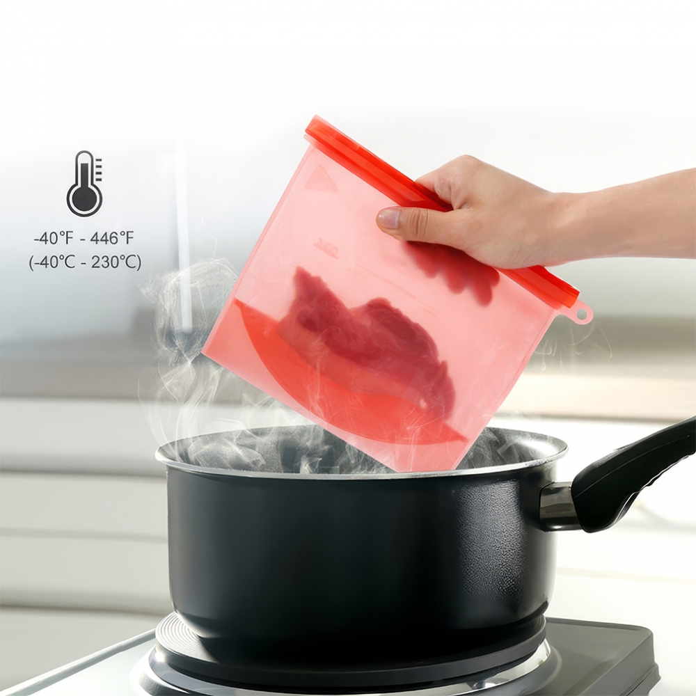 Sandarus uždarymas apsaugo nuo skysčių išsiliejimo ir kvapų sklidimo, todėl maišelis tinka sriuboms, marinatams, padažams, daržovėms, vaisiams, mėsai, žuviai ar paruoštiems patiekalams. Maišelį galima naudoti šaldytuve, šaldiklyje, mikrobangų krosnelėje ir net verdančiame vandenyje, todėl jis idealiai tinka sous-vide gaminimui ar maisto šildymui.