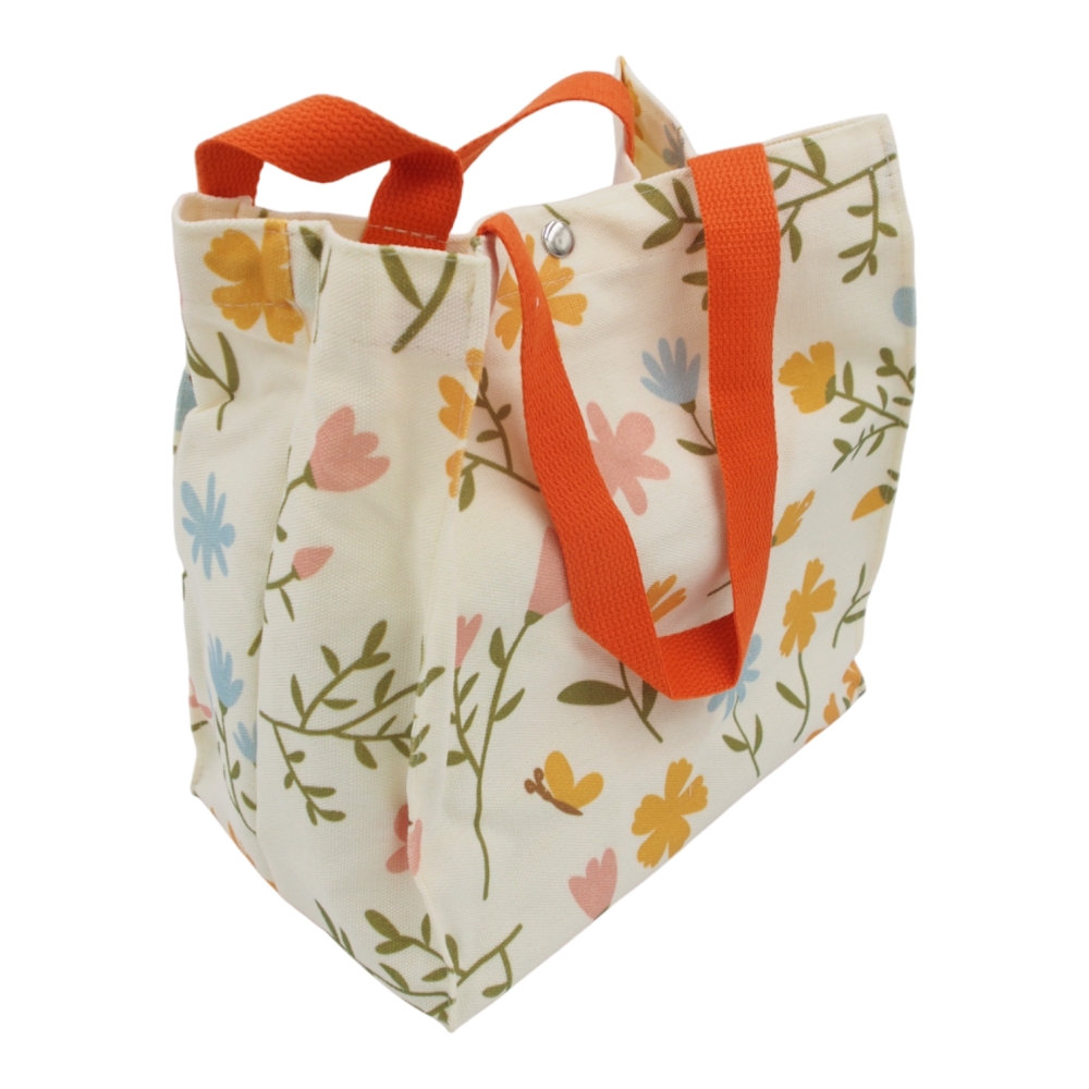 Kompaktiškas ir praktiškas mini medžiaginis krepšelis, puikiai tinkantis pietų dėžutei, užkandžiams, kepiniams ar įvairioms smulkmenoms laikyti ir nešioti. Dėl patogaus dydžio krepšelis idealiai tinka kasdieniam naudojimui – į darbą, mokyklą, išvykas ar trumpus apsipirkimus.