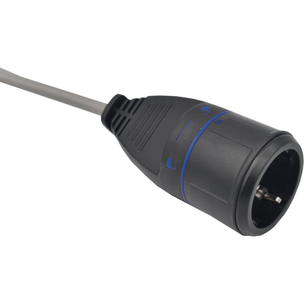 Patikimas ir saugus prailgintuvas, skirtas naudoti patalpose. Tiek kištukas, tiek lizdas yra įžeminti, todėl užtikrinamas saugus elektros prietaisų naudojimas. Integruotas lizdo užrakto mechanizmas leidžia tvirtai fiksuoti prijungtą kištuką – paprastu pasukimu išvengsite atsitiktinio atsijungimo.