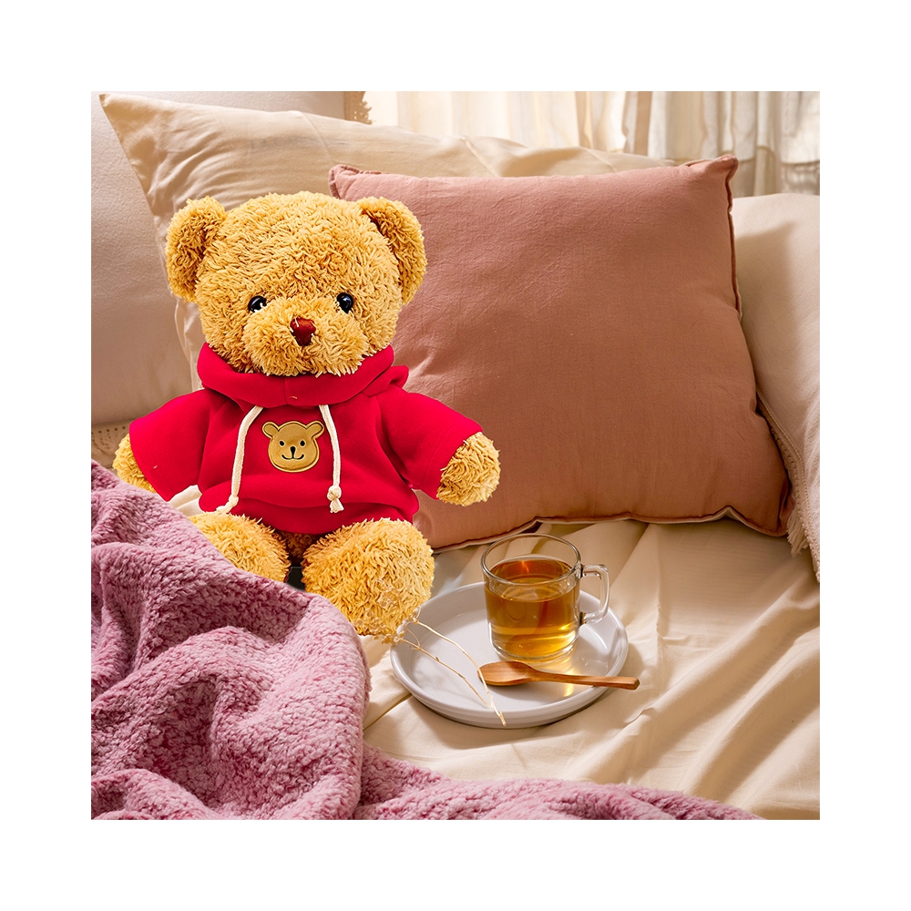 Minkštas pliušinis meškiukas su raudonu džemperiu – švelnus draugas kiekvienai dienai!