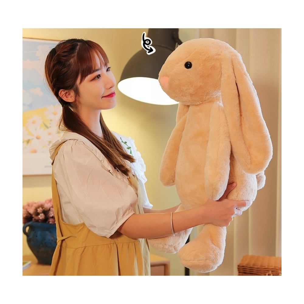 Šis didelis, mielas pliušinis zuikutis pavergs tiek vaikų, tiek suaugusiųjų širdis! Pagamintas iš aukštos kokybės, švelnaus pliušo, jis yra nepaprastai minkštas ir malonus liesti – tobulas pasirinkimas apkabinimams, poilsiui ar jaukiems vakarams.