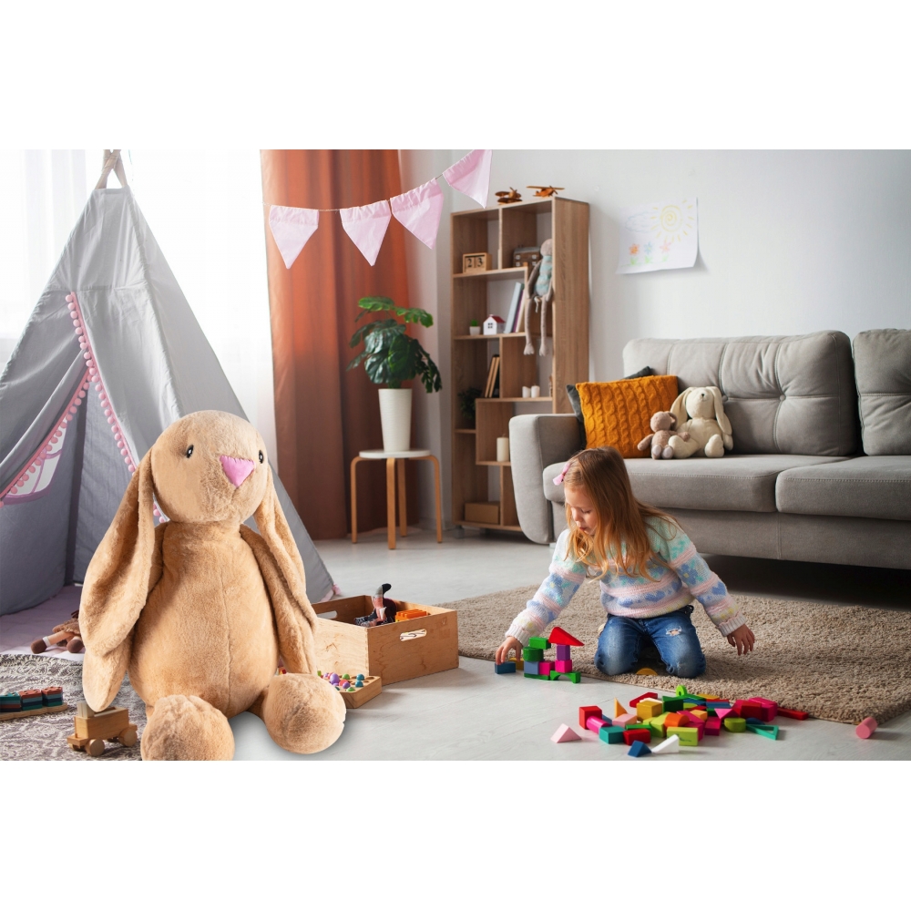 Saugi medžiaga ir minkštas užpildas leidžia naudoti zuikutį tiek žaidimams, tiek miegui – jis taps geriausiu draugu kiekvieną dieną!