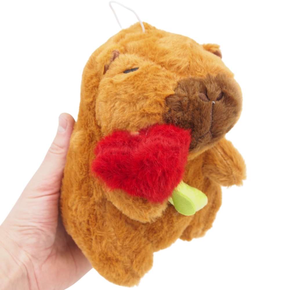 Minkštas pliušinis žaislas kapibara su širdelės gėle