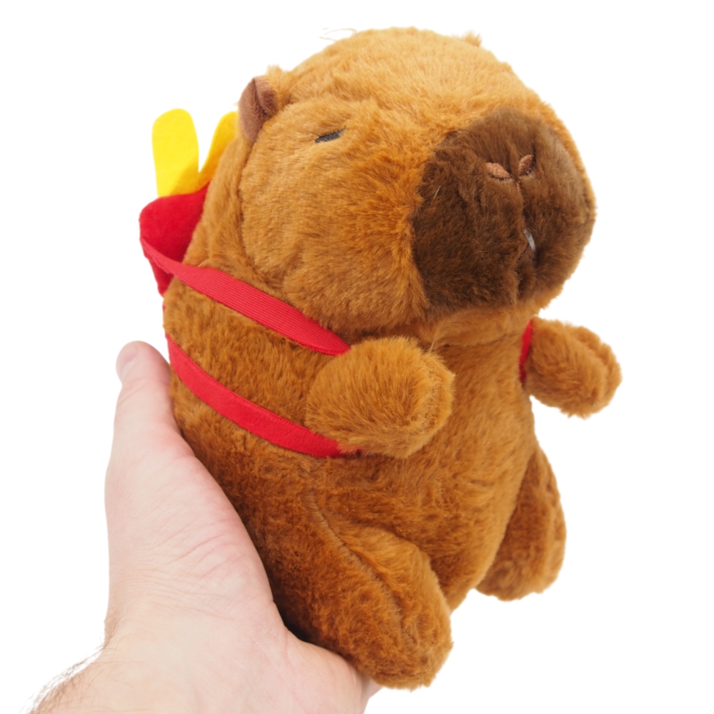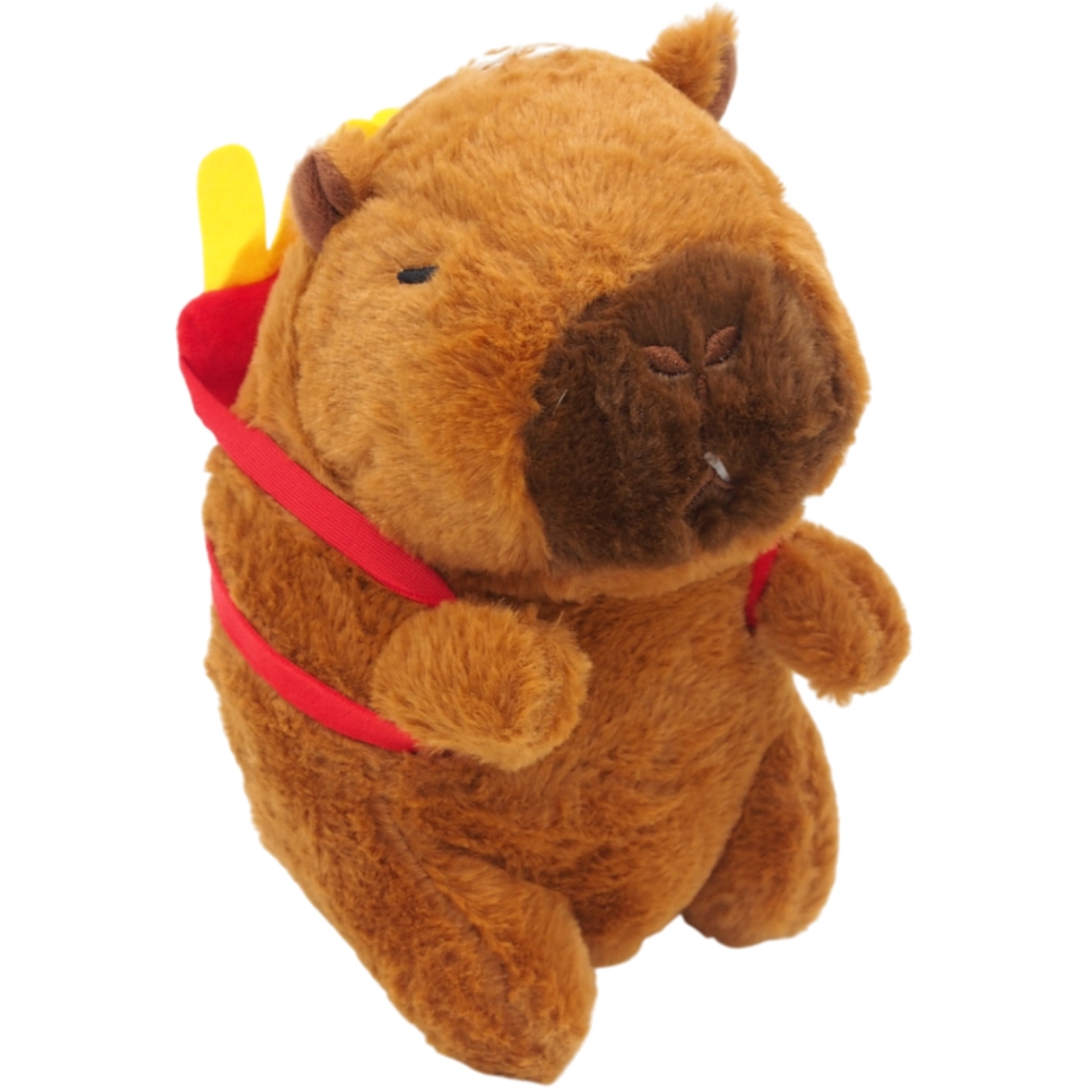 Minkštas pliušinis žaislas kapibara su bulvyčių kuprine