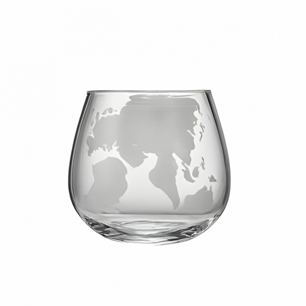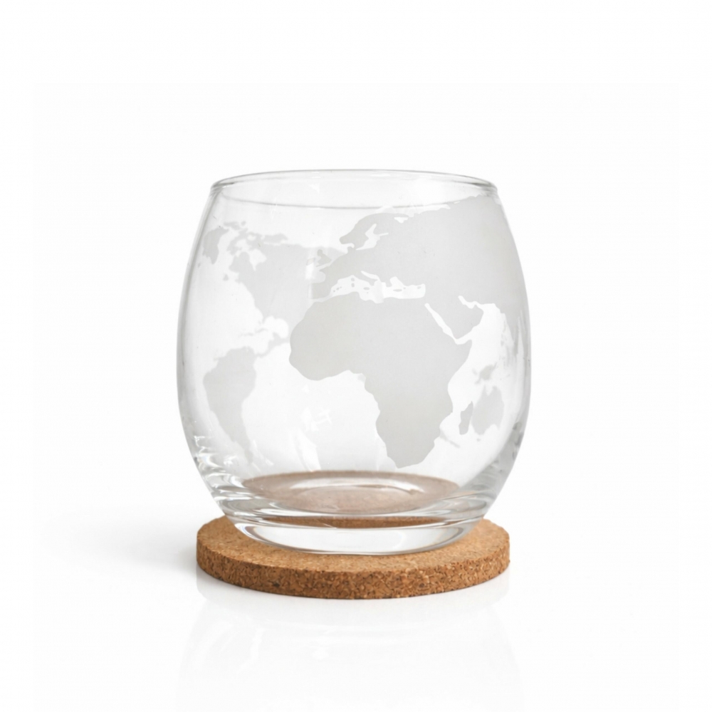 - 4 × 300 ml stiklinės su pasaulio žemėlapio graviravimu