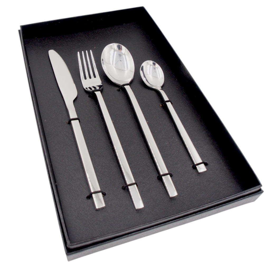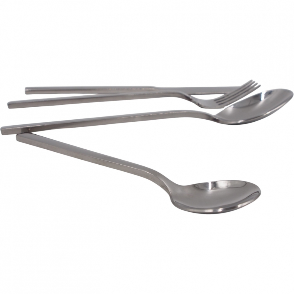 Modernus ir elegantiškas nerūdijančio plieno stalo įrankių rinkinys, kuris papildys Jūsų kasdienį stalą ar taps puikia dovanos idėja. Minimalistinio dizaino įrankiai patogūs naudoti ir lengvai priderinami prie bet kokios serviruotės.