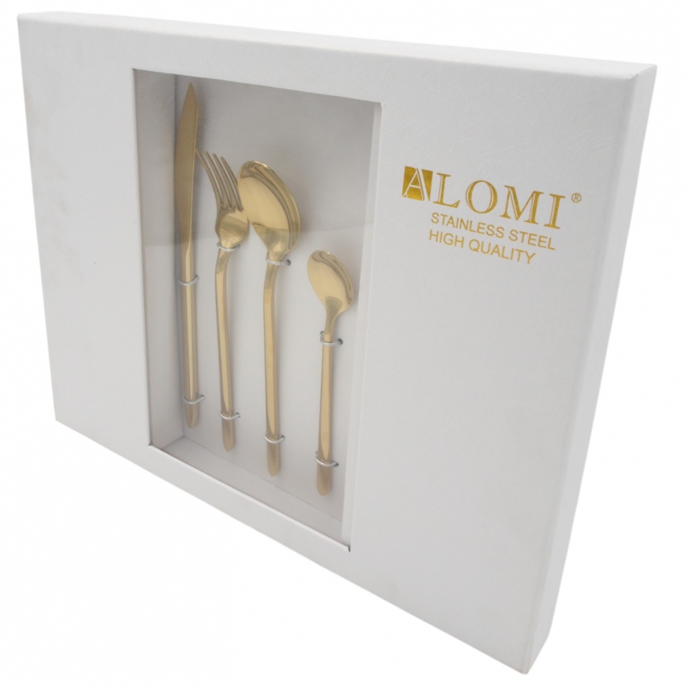 Prabangus ir elegantiškas ALOMI stalo įrankių rinkinys suteiks Jūsų stalui išskirtinumo ir rafinuoto stiliaus. Auksinės spalvos įrankiai pagaminti iš aukštos kokybės nerūdijančio plieno, todėl yra patvarūs, ilgaamžiai ir puikiai tinka tiek kasdieniam naudojimui, tiek ypatingoms progoms.