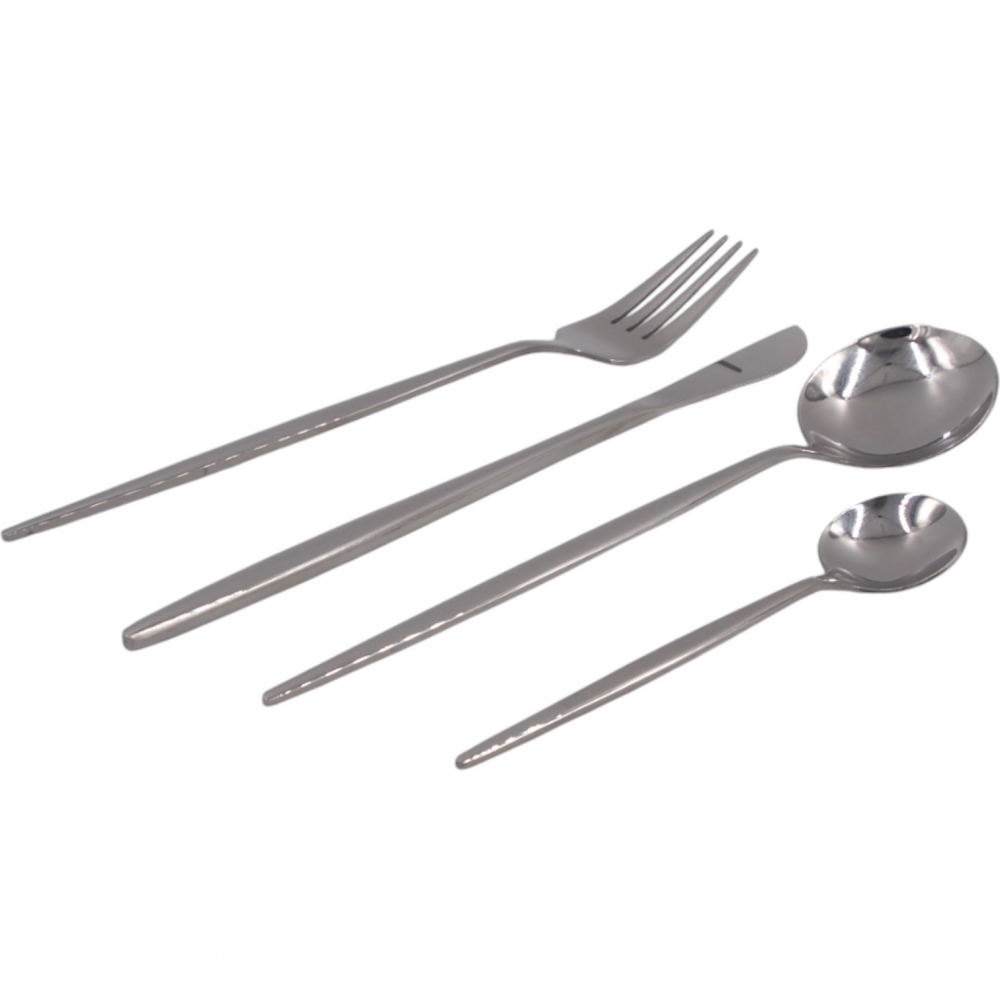 Elegantiškas ir praktiškas stalo įrankių rinkinys, pagamintas iš aukštos kokybės nerūdijančio plieno. Minimalistinio dizaino įrankiai tinka tiek kasdieniam naudojimui, tiek šventiniam stalui. Ergonomiškos formos rankenėlės patogiai guli rankoje, o blizgus paviršius suteikia prabangos įspūdį.
