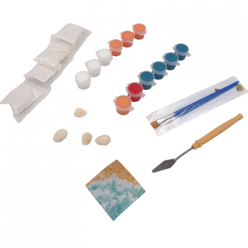Sukurkite unikalų paplūdimio motyvais įkvėptą paveikslą su šiuo 30x30 cm drobės liejimo rinkiniu! Rinkinyje rasite viską, ko reikia kūrybai: gruntuotą drobę su paruoštu kontūru, akrilinius dažus, teptukus, mentelę, dekoratyvines kriaukles bei smėlį. Paprastas naudojimas leidžia net pradedantiesiems mėgautis tapybos procesu ir susikurti gražią dekoraciją namams ar dovaną artimam žmogui.