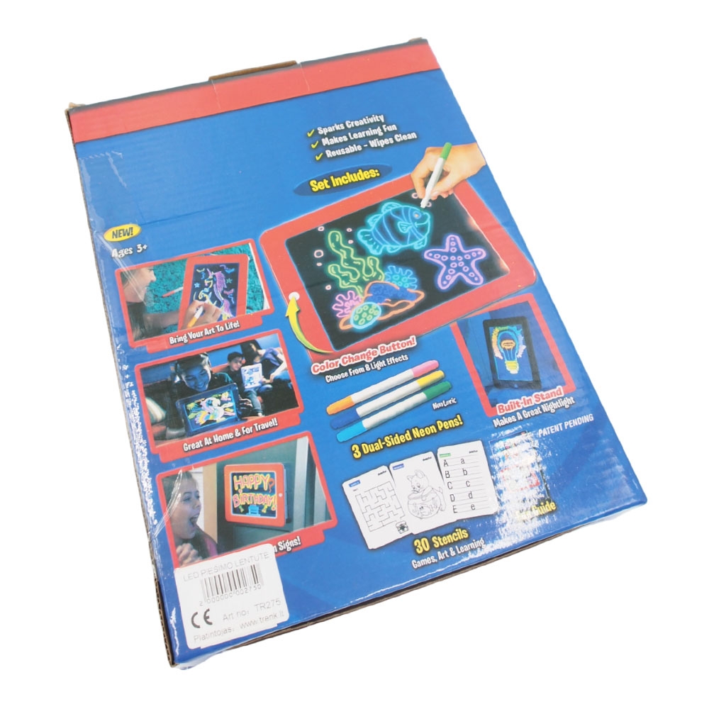 Lavinkite vaikų kūrybiškumą ir vaizduotę su šia LED piešimo lenta! Tai spalvingas ir smagus būdas mokytis, piešti ir kurti švytinčius meno kūrinius. Lenta šviečia ryškiomis spalvomis, todėl kiekvienas piešinys atrodo gyvas ir įspūdingas.