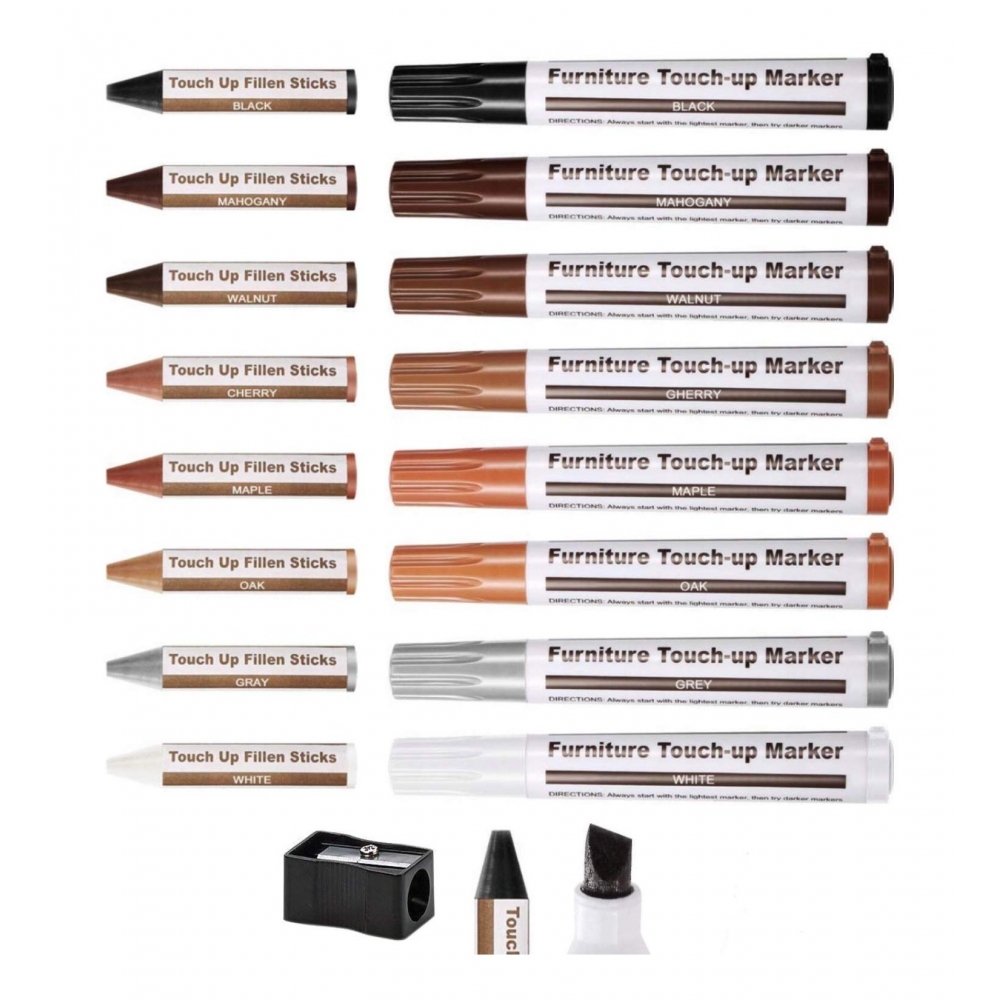 Black, Mahogany, Walnut, Cherry, Maple, Oak, Gray, WhiteVaško pieštukai įbrėžimų užpildymui (8 spalvos)