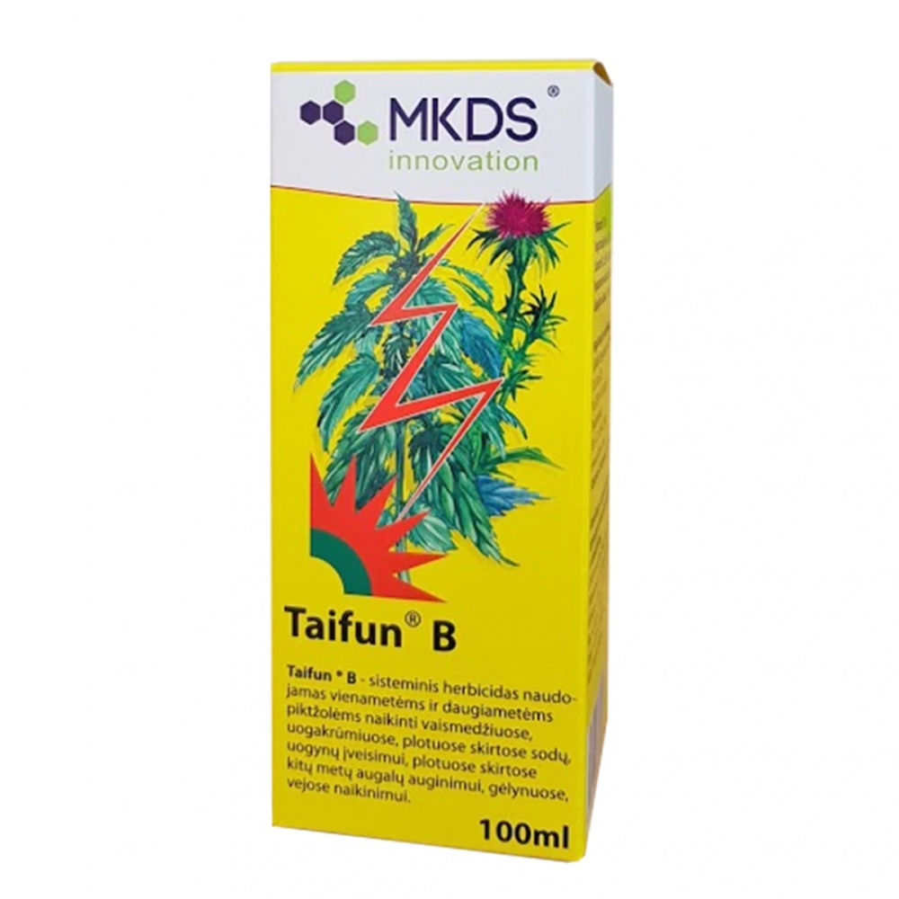 Taifun B – sisteminis herbicidas naudojamas vienmetėms ir daugiametėms piktžolėms naikinti vaismedžiuose, uogakrūmiuose, plotuose skirtose sodų, uogynų įveisimui, plotuose skirtose kitų metų augalų auginimui, gėlynuose, vejose, plotuose prieš bulvių, kopūstų sodinimą, morkų sėją naikinimui.