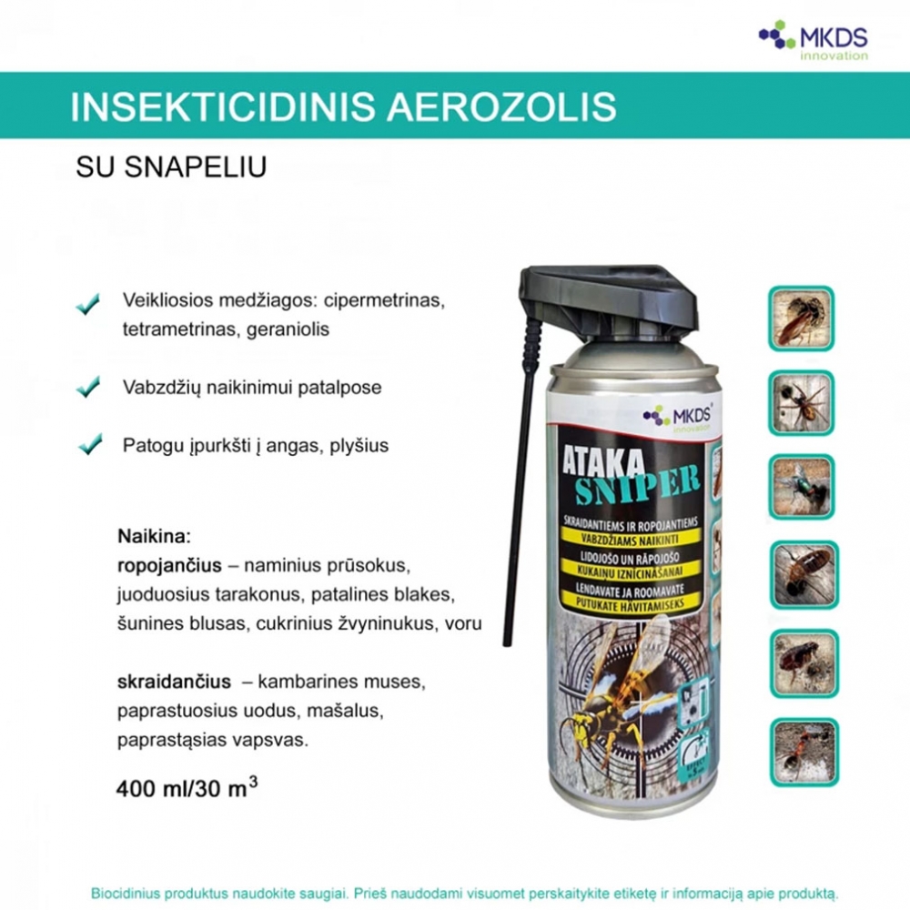 Ataka Sniper insekticidas skirtas ropojančiųjų (naminių prūsokų, juodųjų tarakonų, patalinės blakių, šuninių blusų, cukrinių žvyninukų) ir skraidančių vabzdžių (kambarinių musių, paprastųjų uodų, mašalų, paprastųjų vapsvų) naikinimui patalpose.