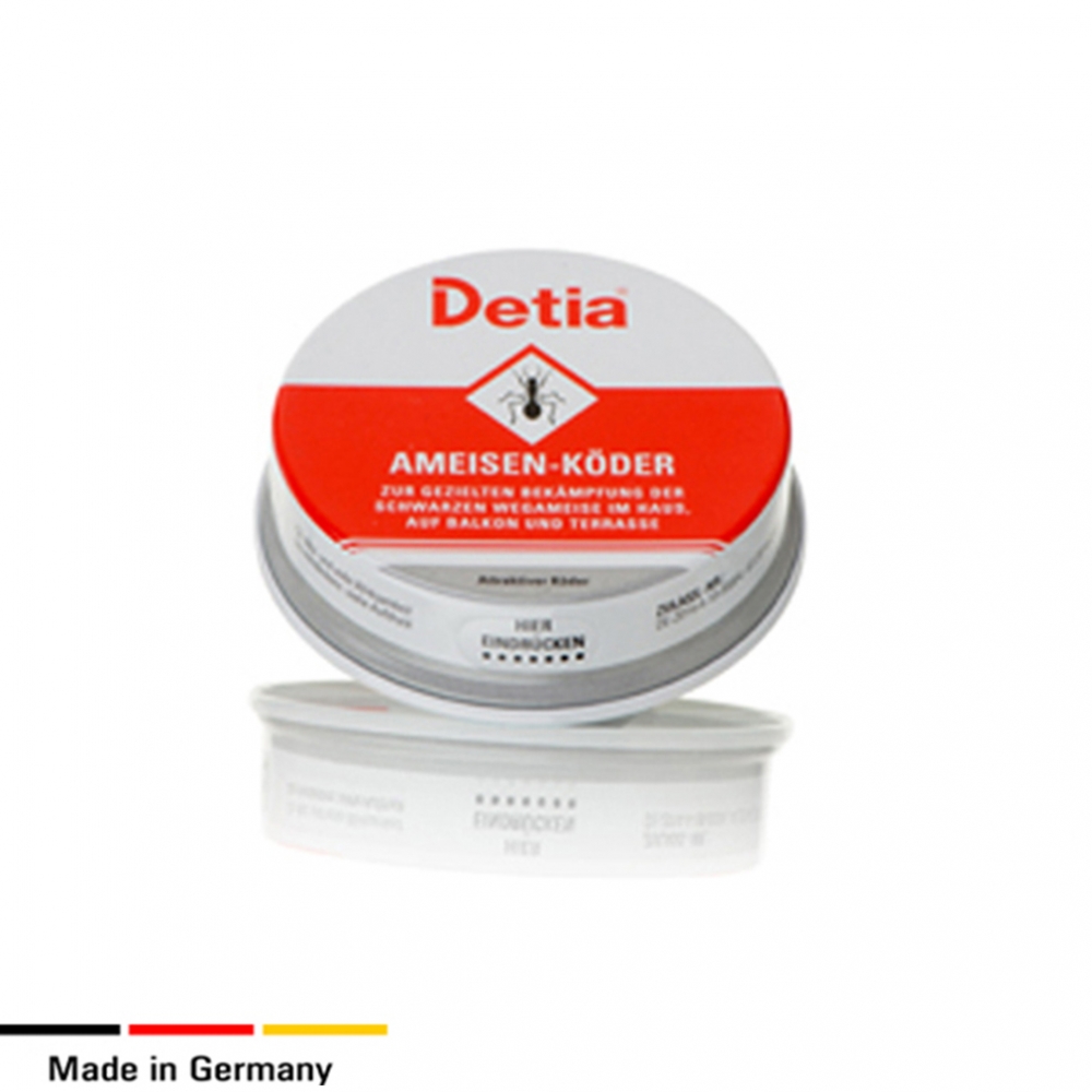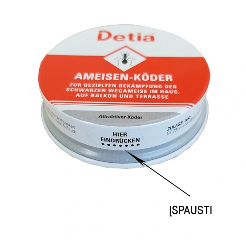 Detia metalinė dėžutė skirta sodo skruzdžių naikinimui. Produktą galima naudoti patalpose, aplink pastatus, sode.