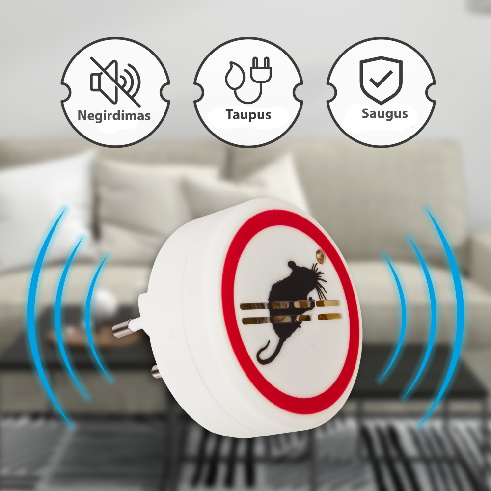 Ultragarsinis pelių atbaidytuvas skirtas efektyviai apsaugoti patalpas nuo graužikų, sukuriant nematomą apsauginį barjerą iki 30 m² plote. Prietaisas skleidžia aukšto dažnio ultragarsines bangas, kurios yra negirdimos žmonėms, tačiau nemalonios pelėms, todėl jos vengia būti patalpoje.