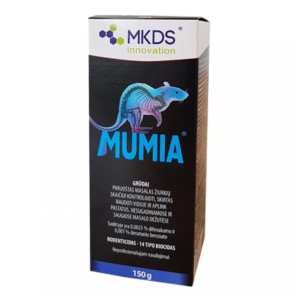 Paruoštas naudoti masalas pelių ir žiurkių skaičiui kontroliuoti, skirtas naudoti viduje ir aplink pastatus nesugadinamose ir saugiose masalo dėžutėse. Jei vieta drėgna, naudojimui rinkitės MUMIA pastą, jei sausa – MUMIA grūdus.