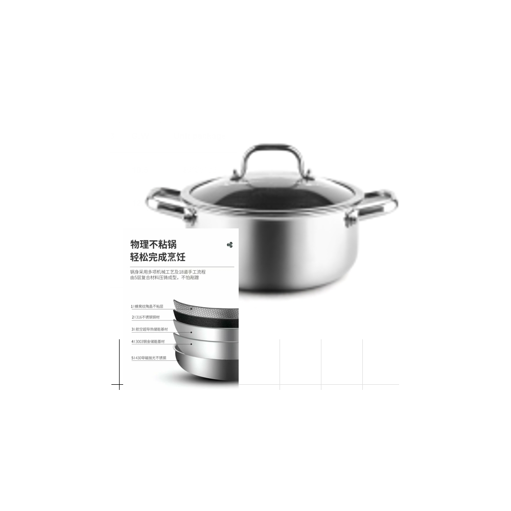 Aukščiausios klasės nerūdijantis plienas, atsparus rūgštims ir druskai, saugus maistui.Vidurinis sluoksnis – Aliuminis