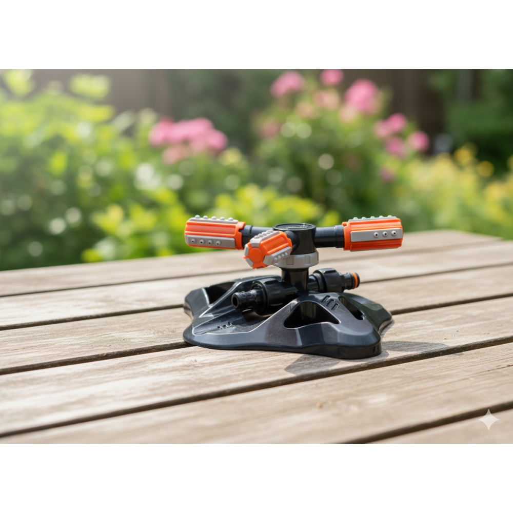 Besisukantis trijų svirčių sodo purkštuvas skirtas efektyviam ir tolygiam vejos bei sodo augalų laistymui. Speciali konstrukcija užtikrina 360° vandens paskirstymą, todėl vienu metu galima palaistyti didelį plotą be nuolatinio purkštuvo perkėlinėjimo.