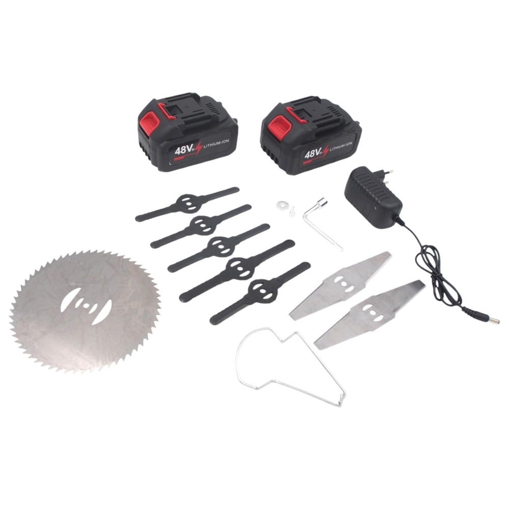 Akumuliatorinis žoliapjovė / trimeris 48V su priedais – universalus sodo įrankis