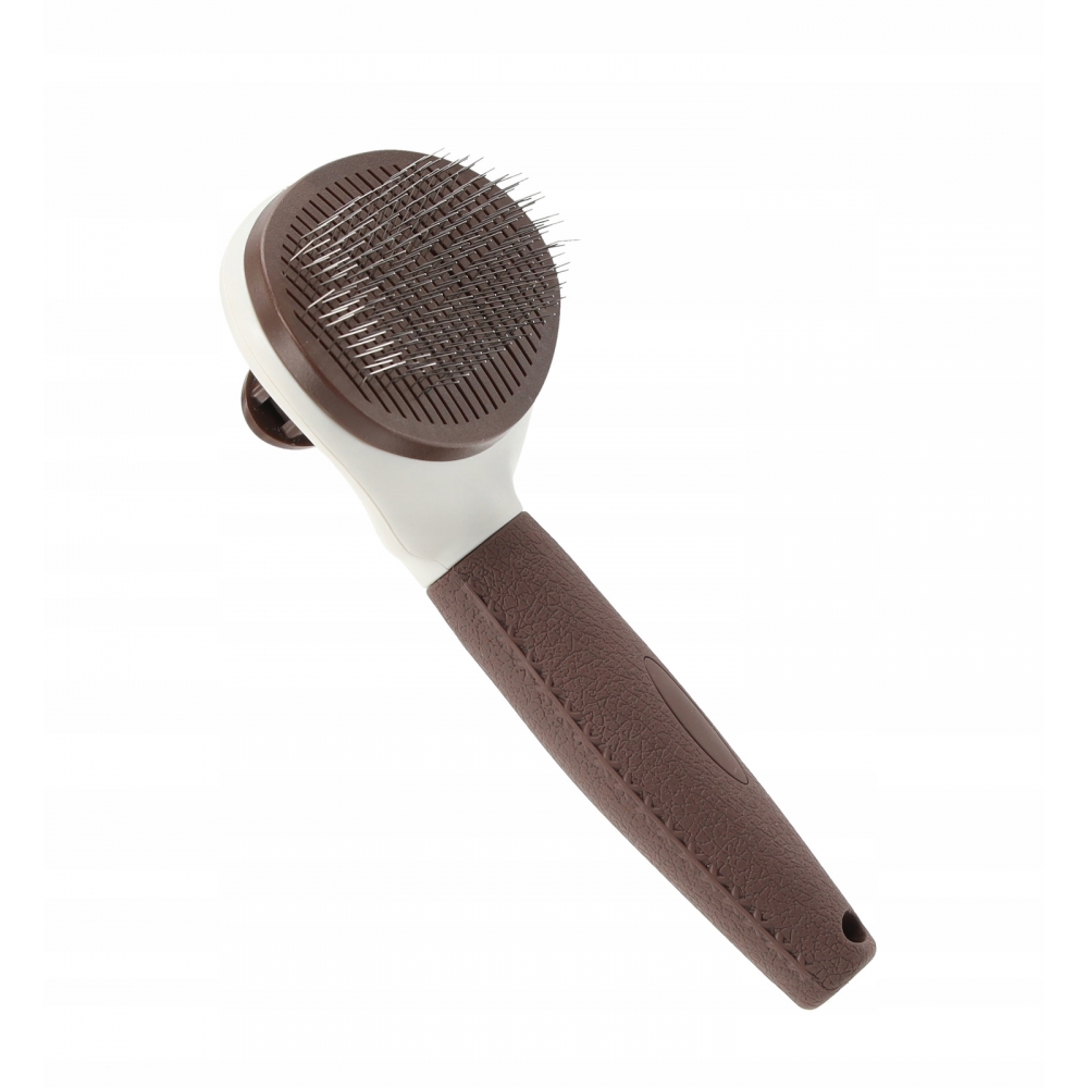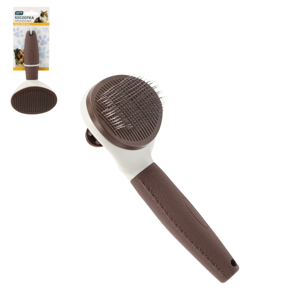 Savaime išsivalantis šepetys skirtas patogiai ir efektyviai šunų bei kačių kailio priežiūrai. Smulkūs metaliniai dantukai švelniai pašalina iškritusius plaukus, purvą ir negyvas kailio daleles, nepažeisdami odos. Integruota savaiminio valymo funkcija leidžia greitai ir paprastai pašalinti susikaupusius plaukus nuo šepečio, todėl priežiūra tampa dar patogesnė.