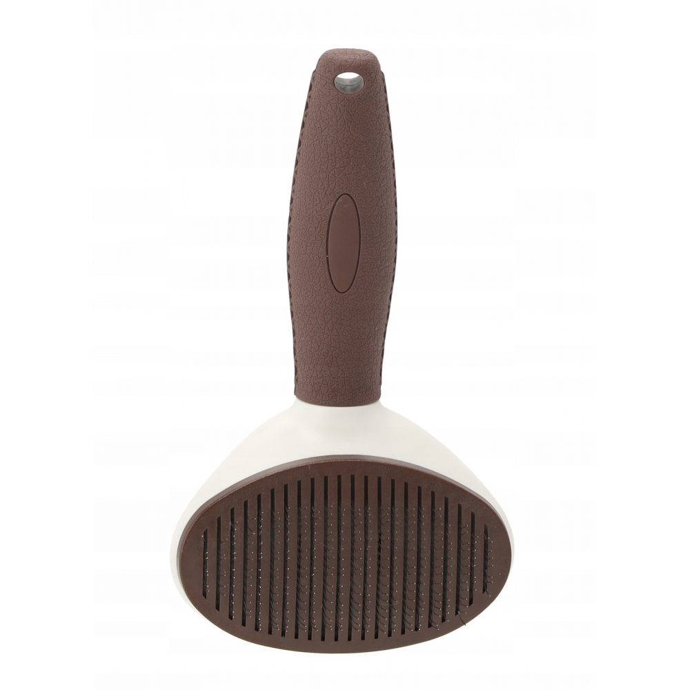 Ergonomiška, neslystanti rankena užtikrina patogų laikymą ir leidžia lengvai kontroliuoti šukavimo procesą. Šepetys tinka tiek trumpaplaukiams, tiek ilgaplaukiams augintiniams, padeda palaikyti švarų, sveiką ir blizgantį kailį.