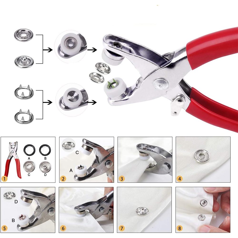Universalus spaudžių montavimo rinkinys, skirtas drabužių, audinių, rankdarbių ir kitų tekstilės gaminių tvirtinimui. Komplekte rasite net 100 metalinių spaudžių įvairių spalvų bei specialias montavimo reples, leidžiančias greitai ir patogiai jas pritvirtinti.
