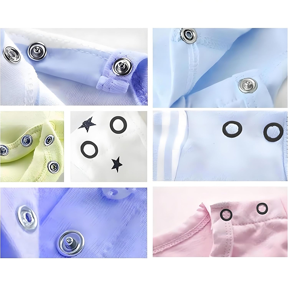 Spaudės pagamintos iš tvirto metalo, atsparios deformacijai ir ilgaamžės. Spalvoti žiedeliai suteikia estetinį vaizdą ir leidžia pritaikyti prie skirtingų audinių.