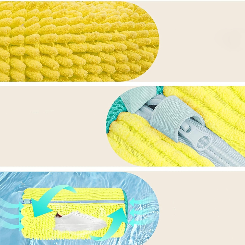 Maišo viduje integruotas minkštas paminkštinimas, kuris amortizuoja smūgius, apsaugo batų paviršių bei skalbimo mašinos būgną nuo pažeidimų. Tinklinė struktūra leidžia vandeniui ir skalbikliui lengvai cirkuliuoti, todėl batai išskalbiami efektyviai, bet švelniai.
