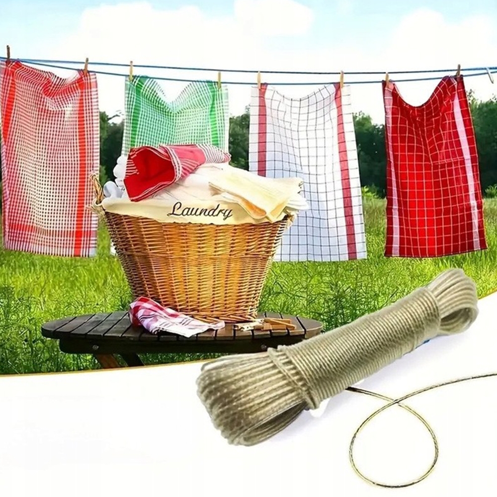Praktiška ir patvari skalbinių virvė – puikus pasirinkimas tiek namams, tiek sodui ar kelionėms. Virvė pagaminta iš tvirto sintetinio pluošto, todėl atspari drėgmei, saulės spinduliams ir kasdieniam naudojimui. Komplekte yra plastikiniai kabliukai, kurie leidžia lengvai ir greitai pritvirtinti virvę norimoje vietoje.