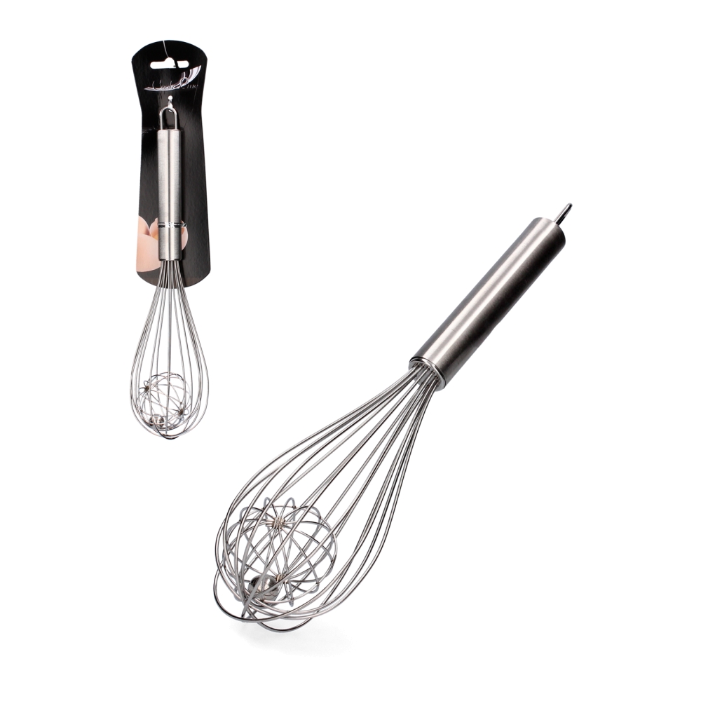 Ši nerūdijančio plieno šluotelė 25,4 cm yra praktiškas ir patikimas virtuvės įrankis kasdieniam maisto ruošimui, padedantis greitai ir tolygiai paruošti įvairias mases.