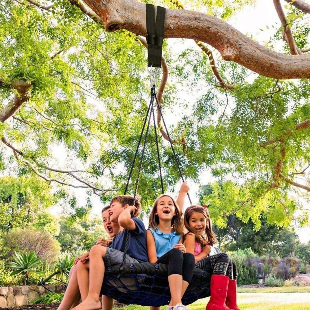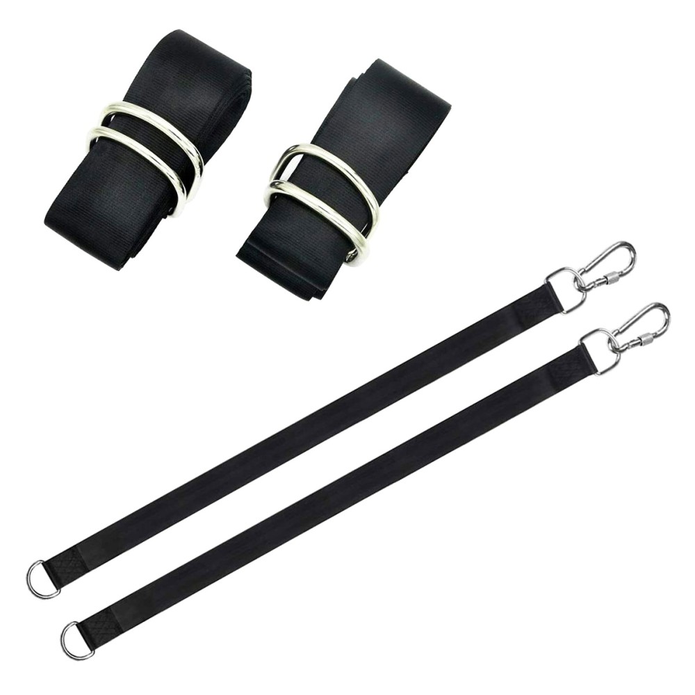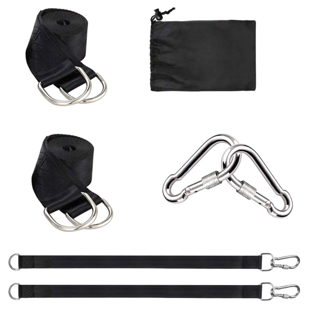 Du tvirti tvirtinimo dirželiai hamakui ar sūpynėms pakabinti. Įrengtos plieninės sagtys ir du papildomi karabinai. Maksimali apkrova iki 150 kg užtikrina saugumą naudojimo metu. Labai greitas ir paprastas surinkimas – tiesiog užveržkite dirželius ant rėmo arba pakankamai tvirtos medžio šakos.