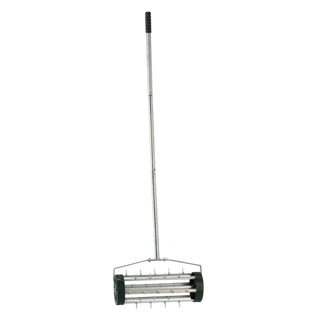 Rankinis aeratorius su ratukais – tai patikimas ir efektyvus įrankis vejos priežiūrai. Skirtas vejos aeracijai, t. y. dirvos pradūrimui specialiais metaliniais smaigaliais, kad į šaknis patektų daugiau oro, vandens ir maistinių medžiagų. Reguliari aeracija gerina vejos būklę, skatina tankesnį augimą ir padeda išlaikyti sveiką veją.