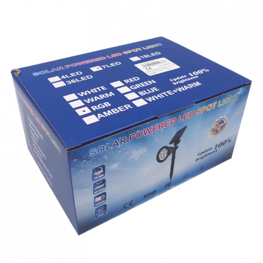 Saulės energija įkraunamas LED prožektorius, 7 LED, RGB