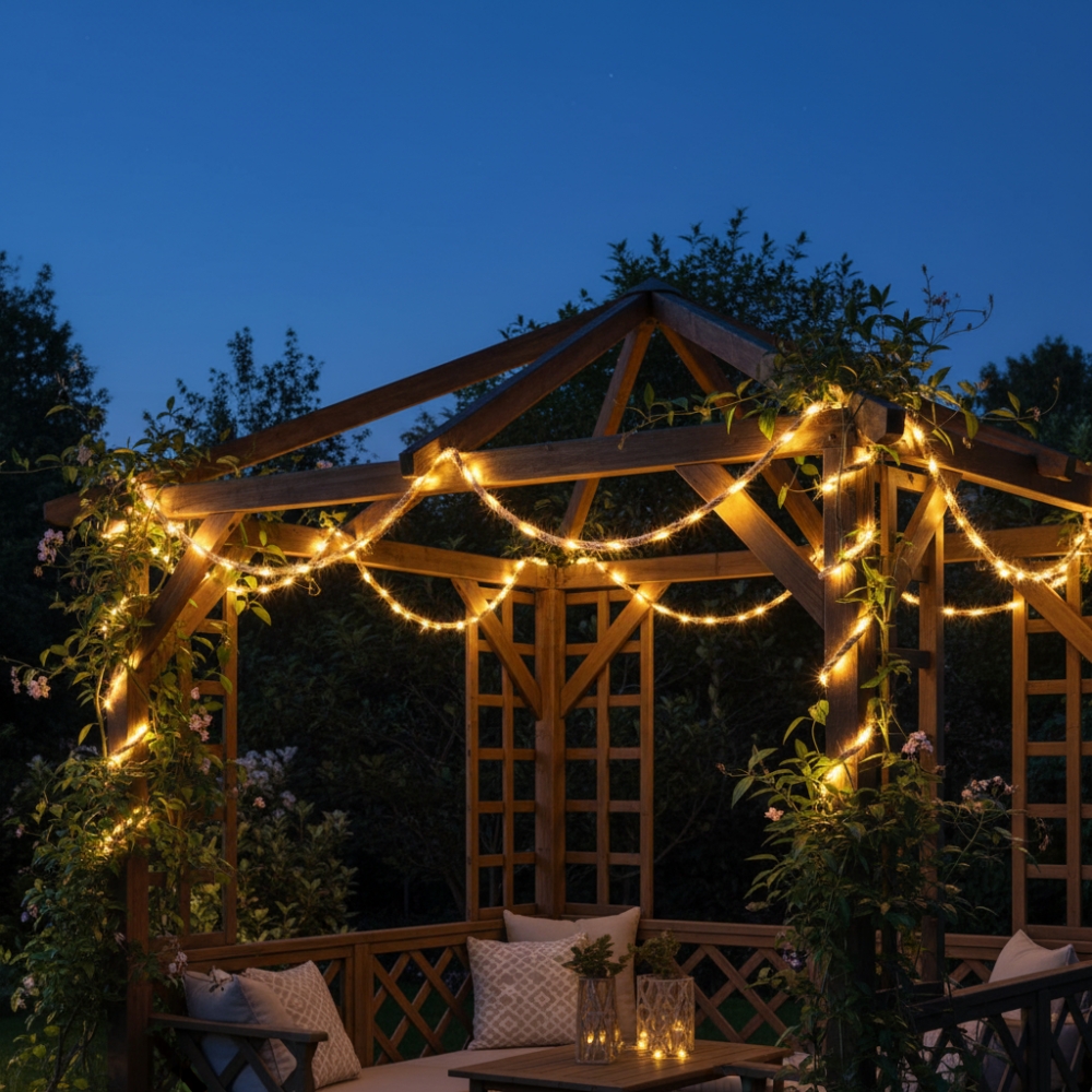 Ši LED girlianda yra praktiškas ir ekonomiškas sprendimas, leidžiantis sukurti jaukų apšvietimą be papildomų elektros išlaidų. Idealiai tinka sezoniniam ir nuolatiniam lauko dekorui.