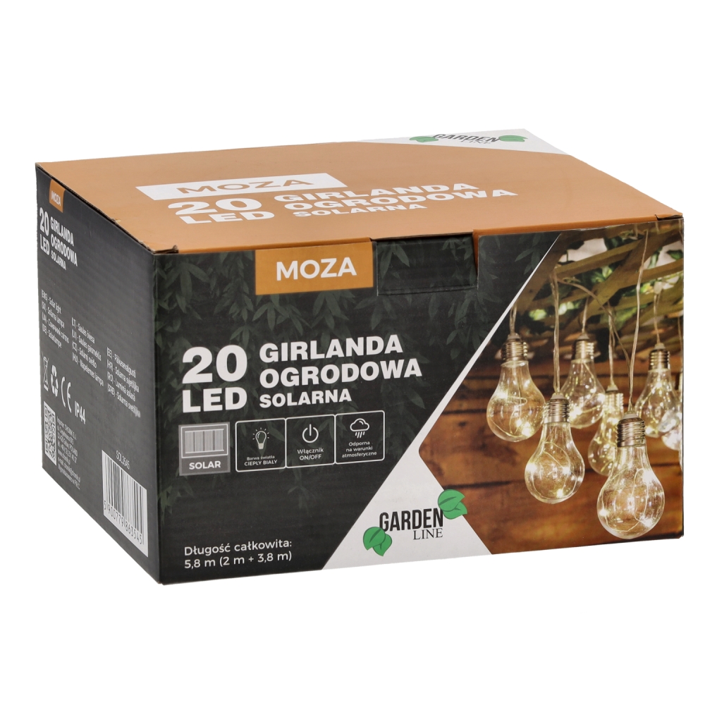 Saulės energija maitinama LED girlianda su lemputėmis 20 LED, 5,8 m