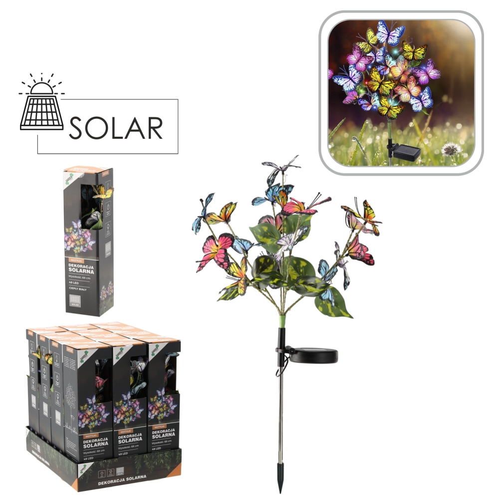 Dekoratyvinė saulės lempa su spalvingais drugeliais