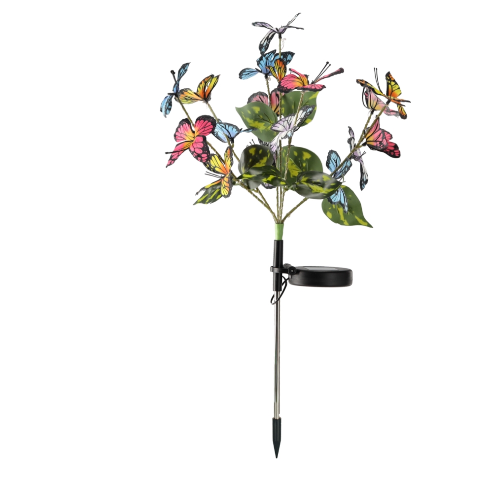 Išskirtinė saulės energija maitinama sodo dekoracija su spalvingais drugeliais ir LED apšvietimu – puikus pasirinkimas norint suteikti sodui, gėlynui ar takeliui gyvybės ir jaukumo. Dieną dekoracija džiugina ryškiomis spalvomis, o sutemus įsižiebia šilta balta šviesa, sukurianti romantišką ir žaismingą atmosferą.