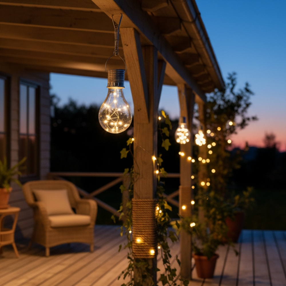 Tai praktiškas ir ekonomiškas lauko apšvietimo sprendimas, kuris ne tik apšviečia erdvę, bet ir suteikia jai išskirtinio charakterio. Puikiai tinka kabinti medžiuose, pavėsinėse, terasose ar prie takelių.