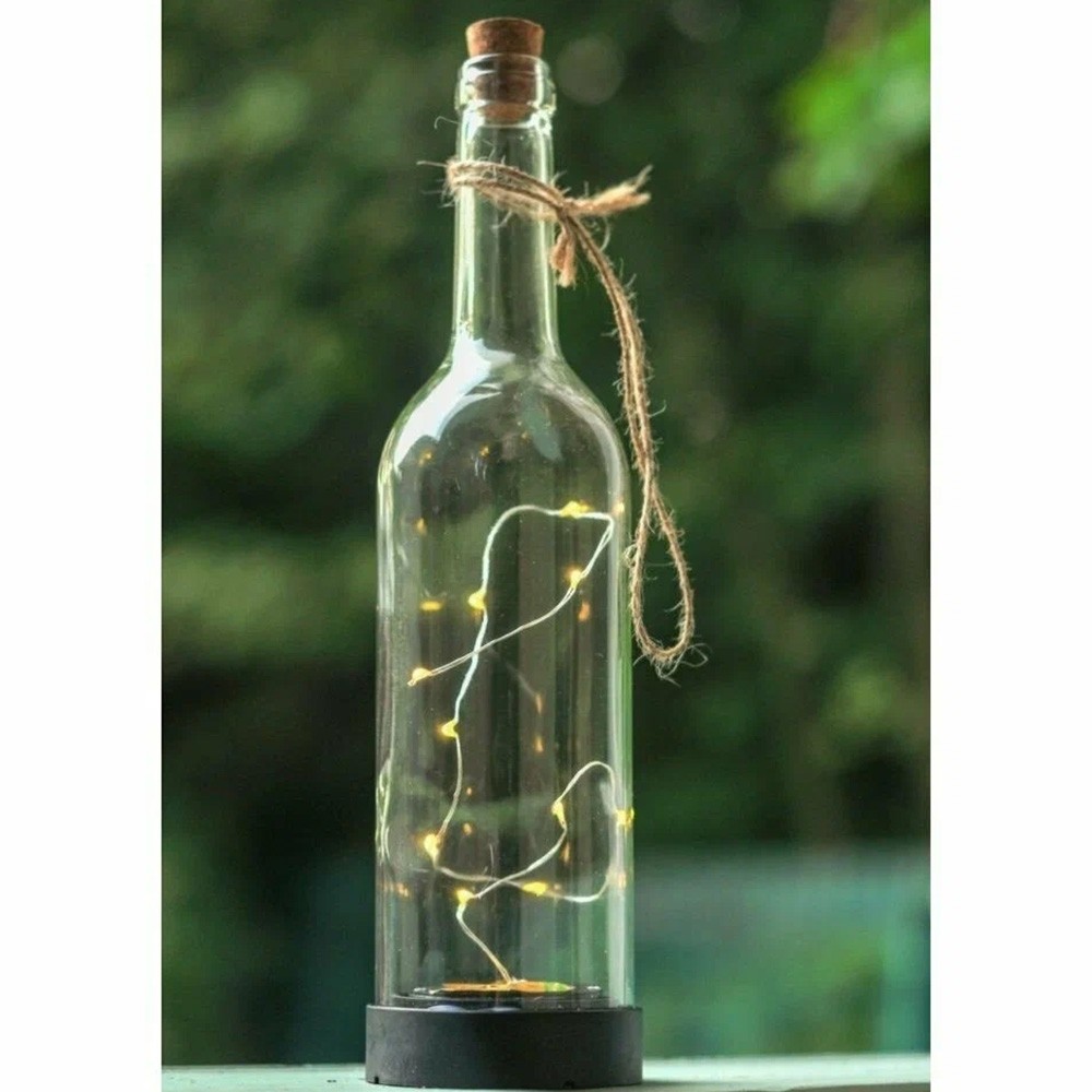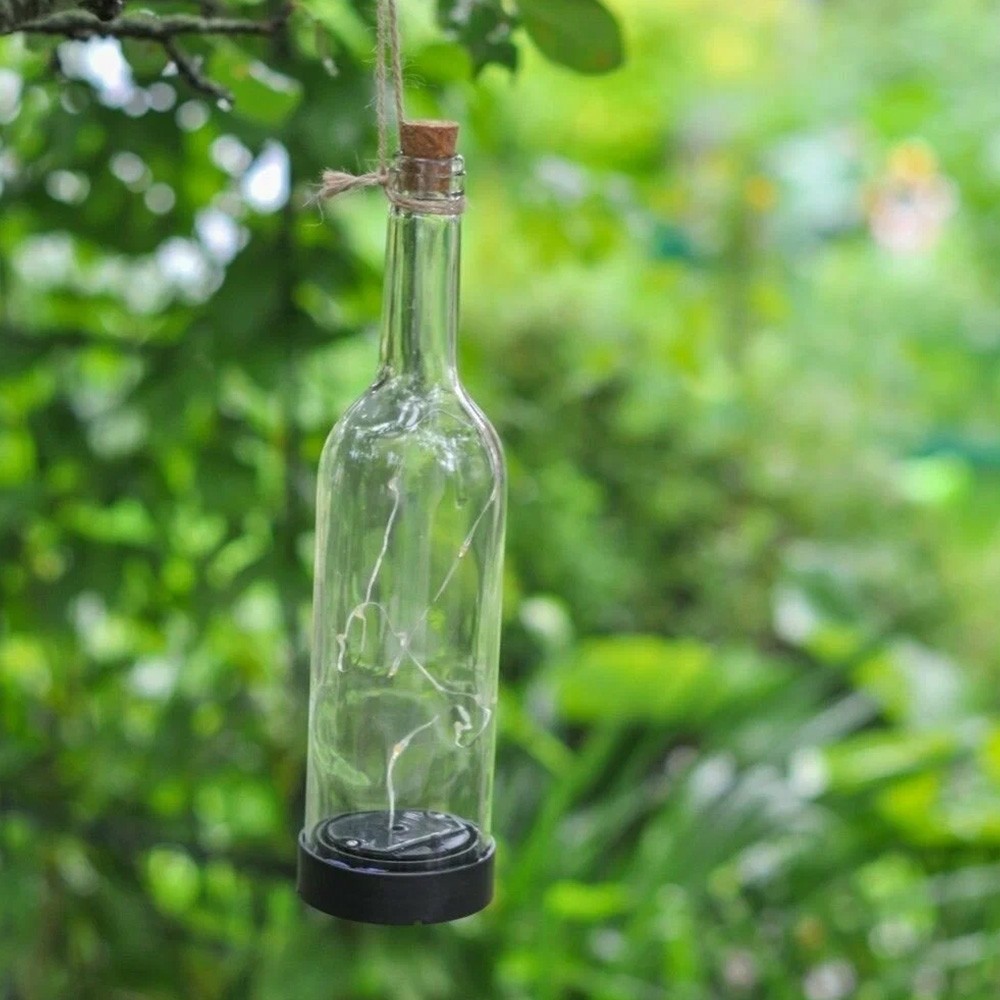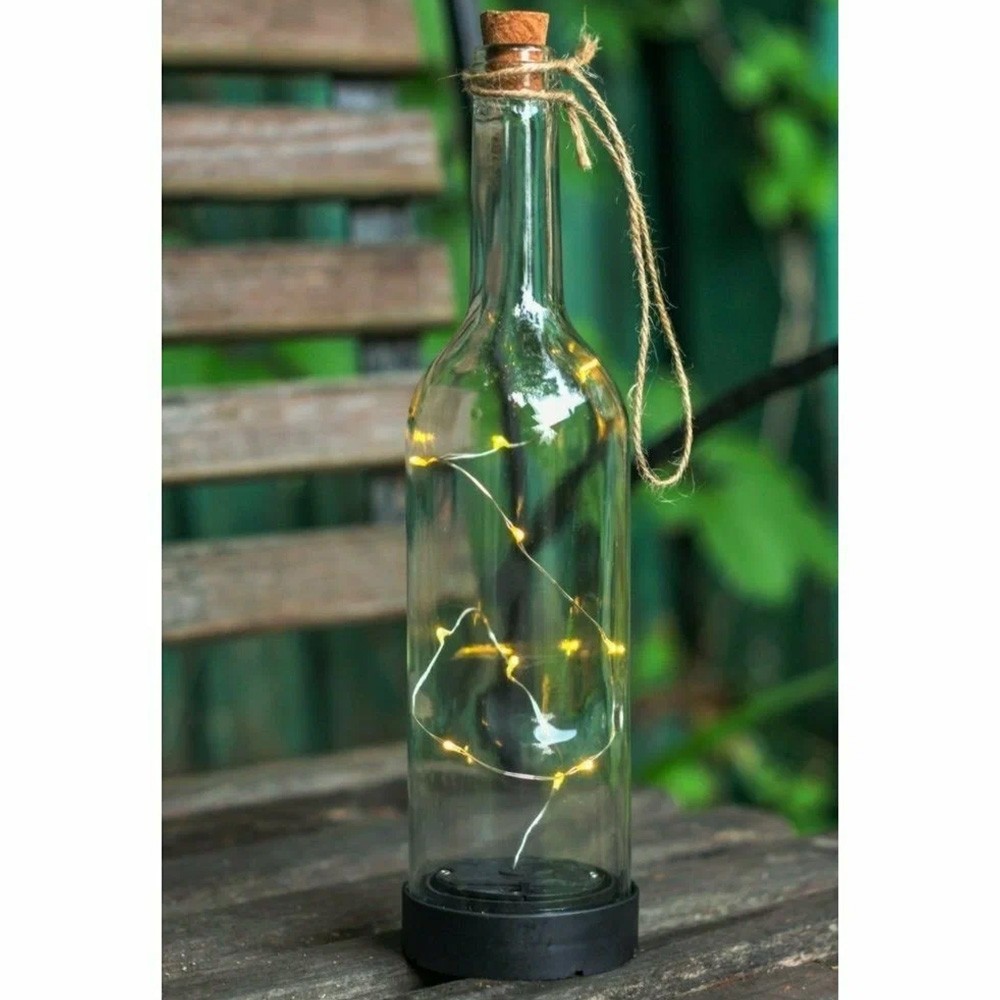 Dekoratyvinė LED lemputė stiklinėje butelio formoje (su saulės baterija)