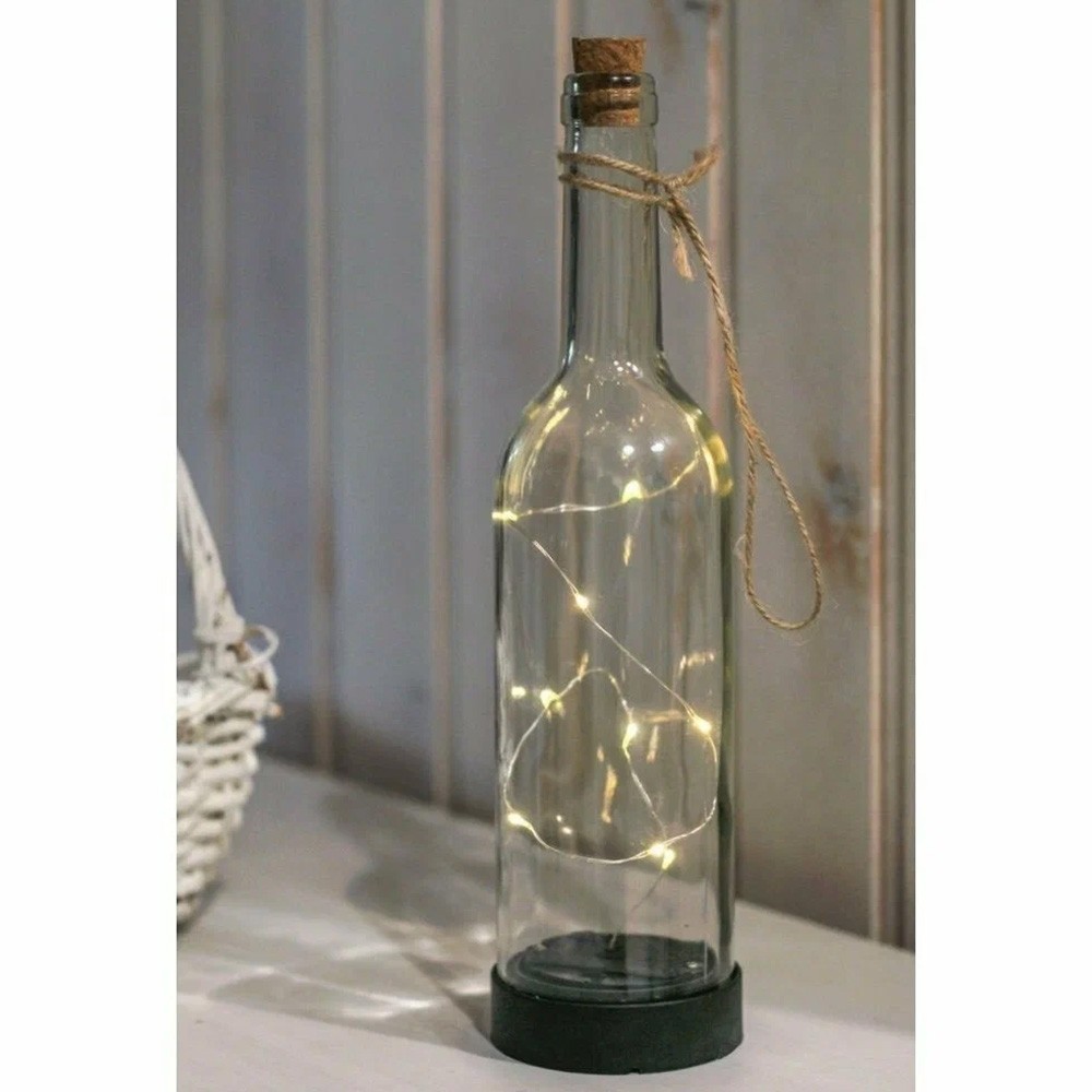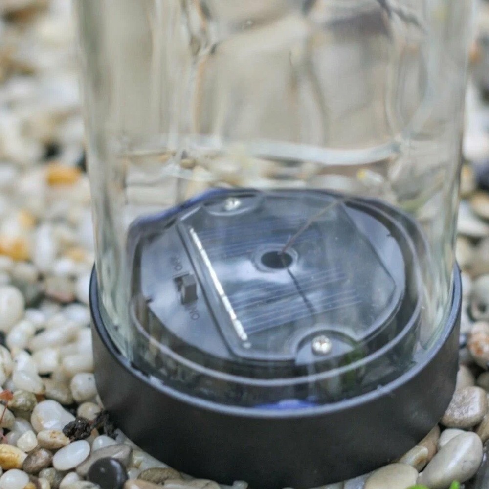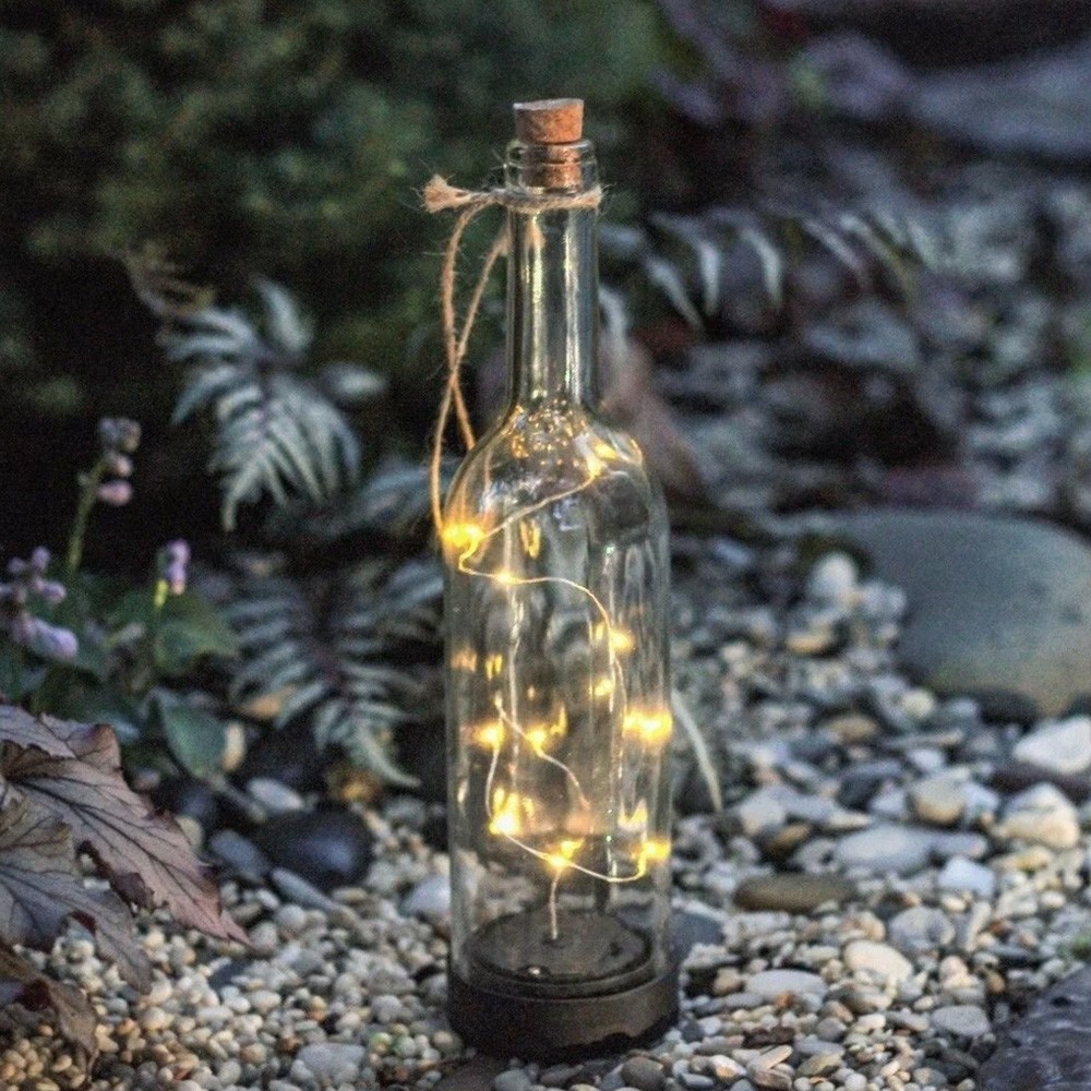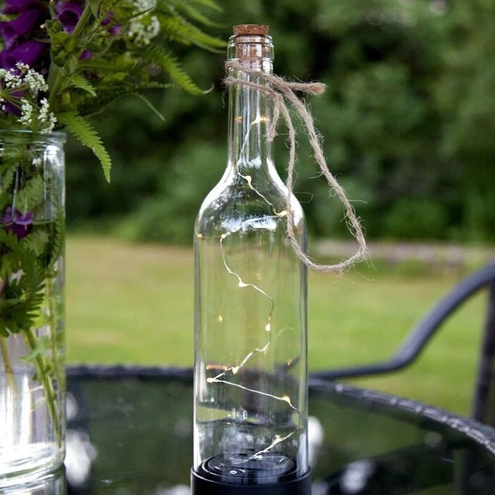 Dekoratyvinė LED lemputė stiklinėje butelio formoje (su saulės baterija)