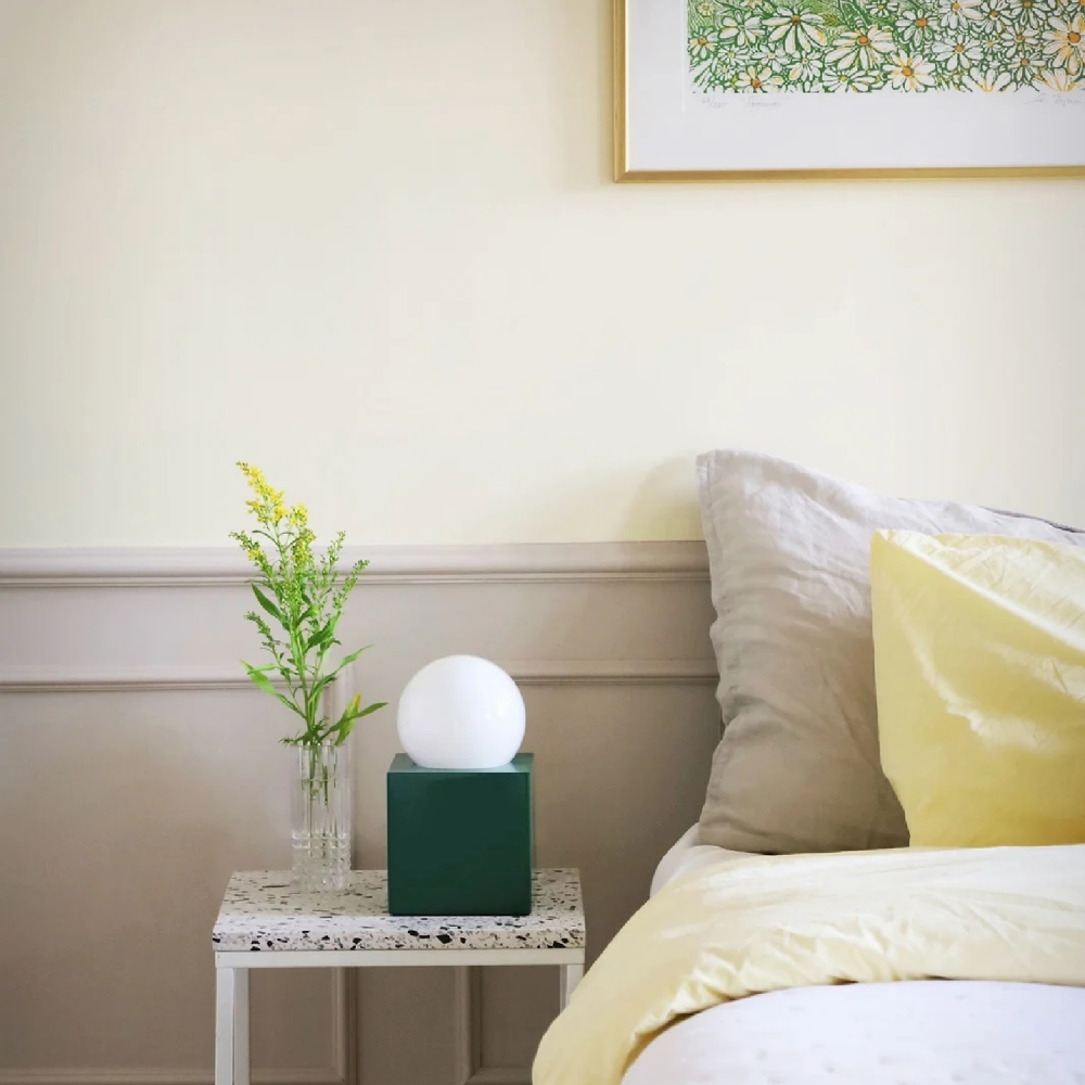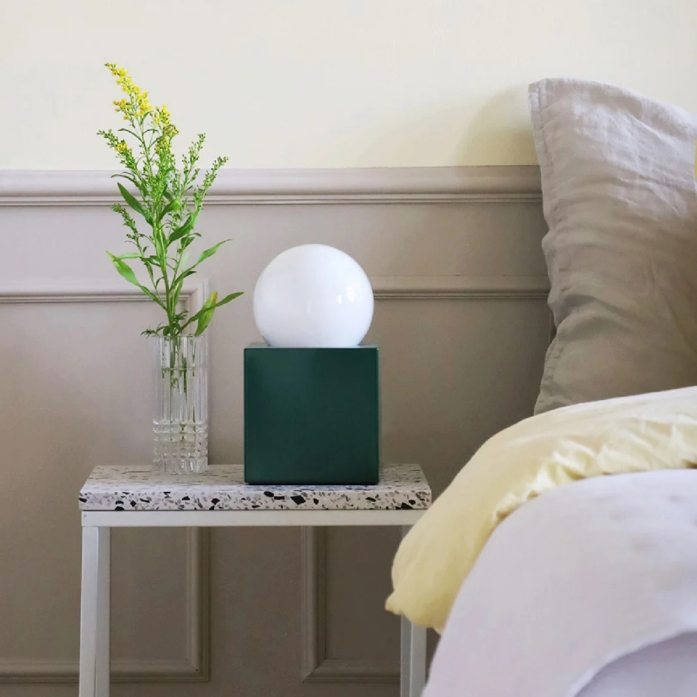Pripildykite savo namus sodrių, žaismingai ryškių spalvų! Nedidukai kubo formos metaliniai šviestuvai turi dvi integuotas USB jungtis, kuriose galėsite pakrauti savo išmaniuosius telefonus ar laikrodžius. Jungiklis nugarėlėje, 200 cm ilgio atitinkamos spalvos tekstilinis laidas su kištuku. Apatinė šviestuvo dalis aptraukta veltiiniu, kad nebraižytų paviršių. Rekomenduojame įsukti 125 mm skersmens E27 lemputę.