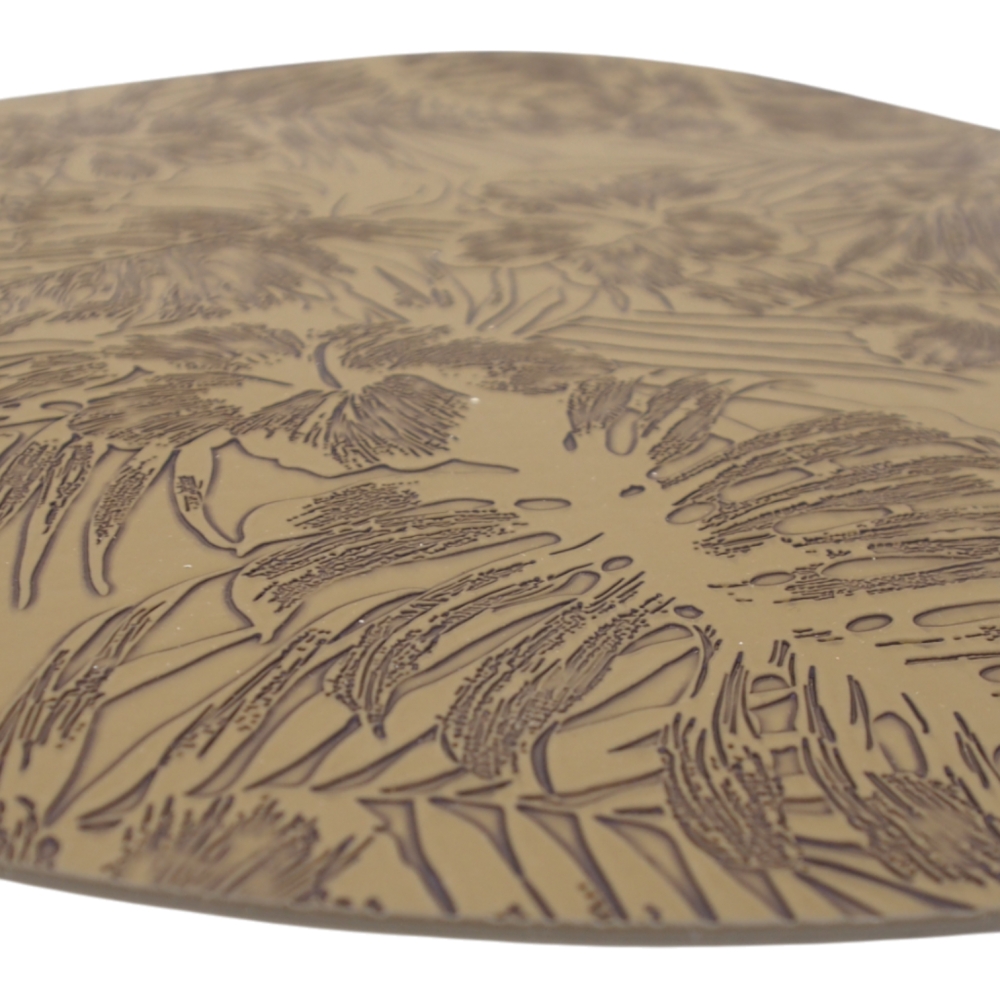 Suteikite savo stalui daugiau jaukumo ir stiliaus su šiuo elegantišku, apvaliu 38 cm skersmens stalo padėkliuku. Jo paviršių puošia subtilus tropinių gėlių ir lapų raštas, kuris suteikia interjerui prabangos ir išskirtinumo. Tai puikus pasirinkimas tiek kasdieniam naudojimui, tiek šventiniam stalui – padėkliukas ne tik puikiai atrodo, bet ir apsaugo jūsų stalą nuo karščio, įbrėžimų bei nešvarumų.