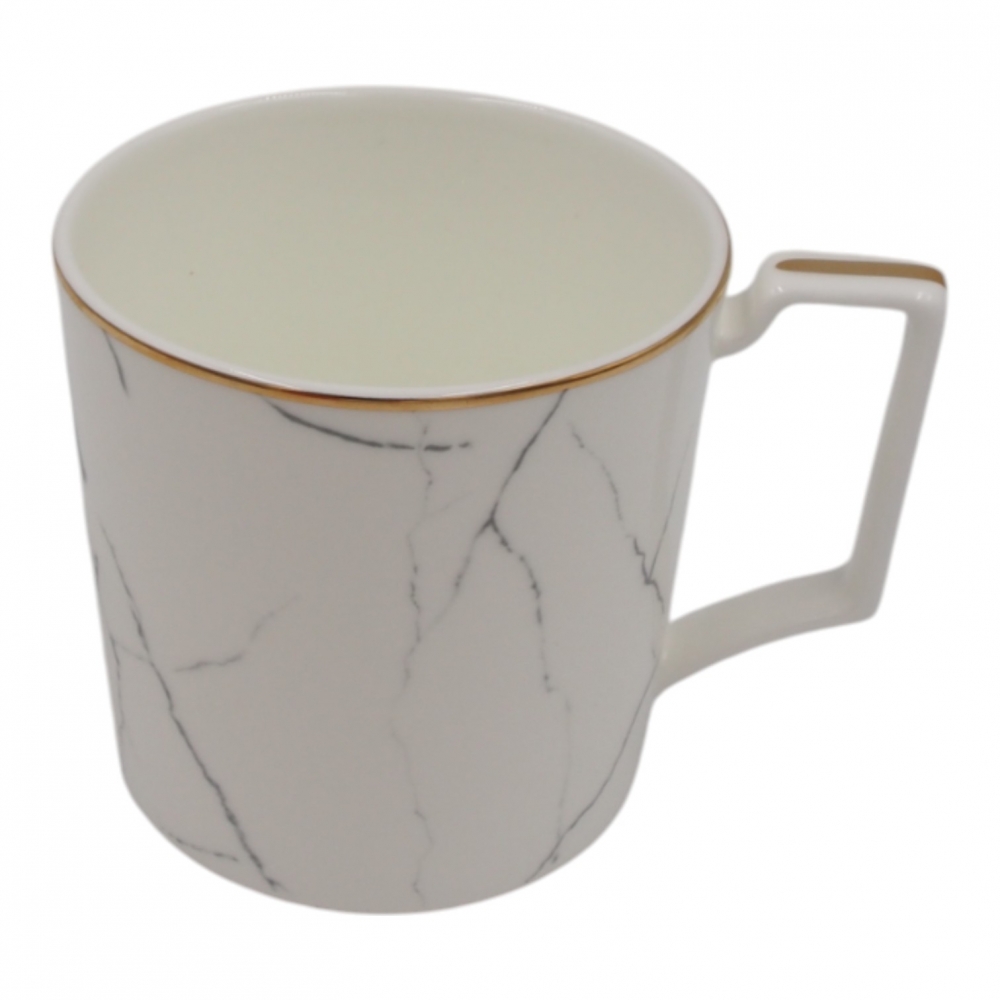 Modernus ir elegantiškas porcelianinis puodelis, dekoruotas subtiliu marmuro raštu bei auksiniu krašteliu. Didesnės talpos – net 400 ml – todėl puikiai tinka mėgstantiems pasimėgauti didesne kava, arbata ar kitu mėgstamu gėrimu.