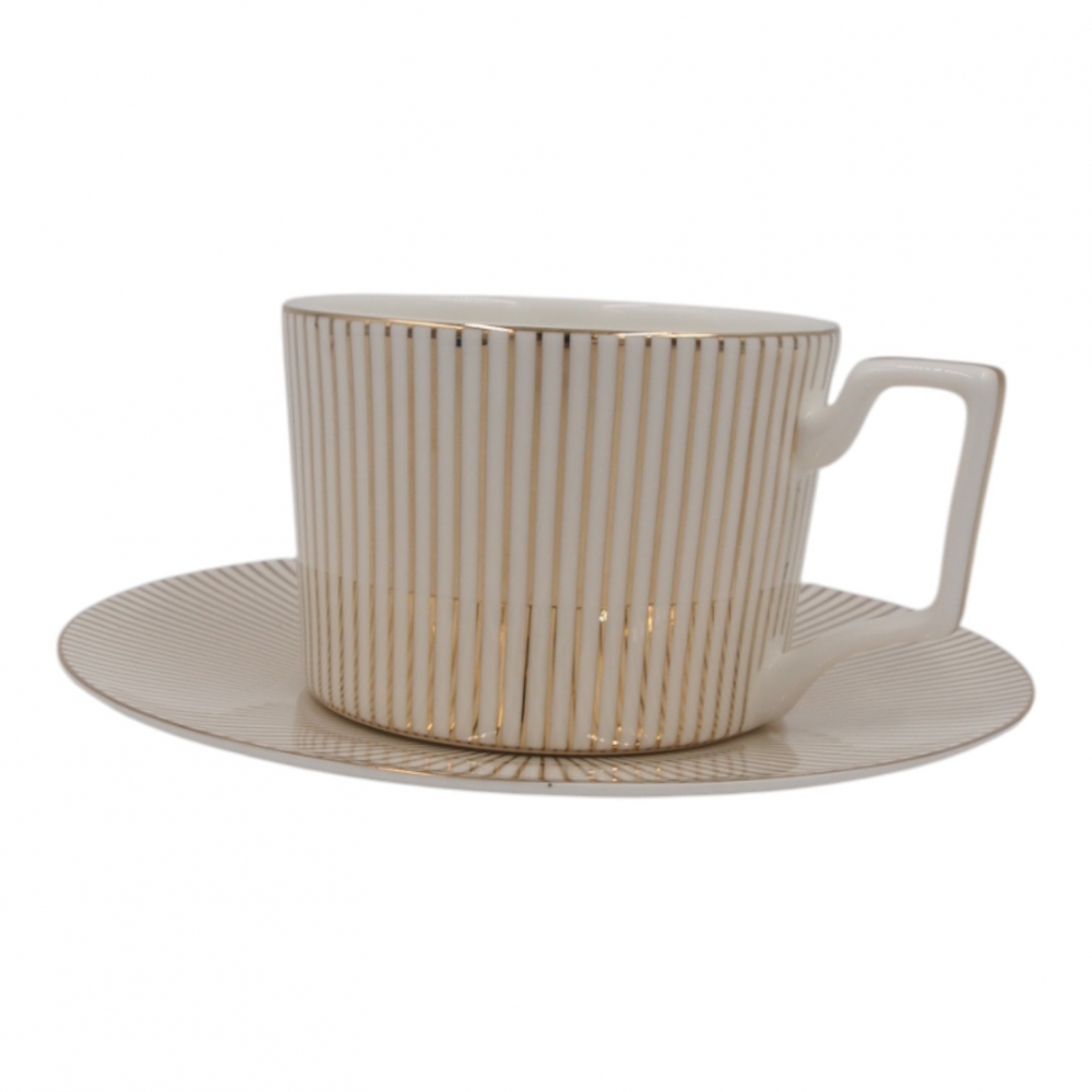 Puodelis su lėkštute, auksinių linijų rašto, 275 ml