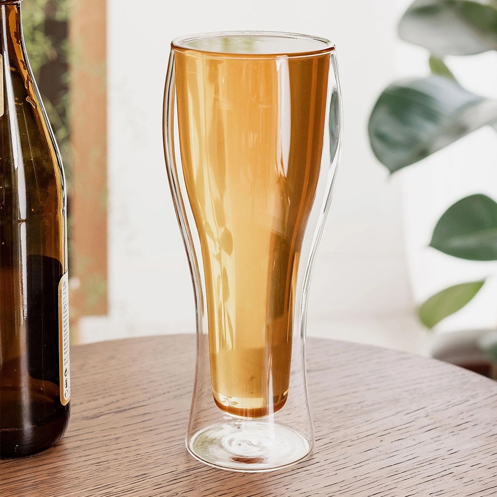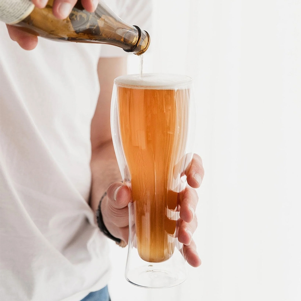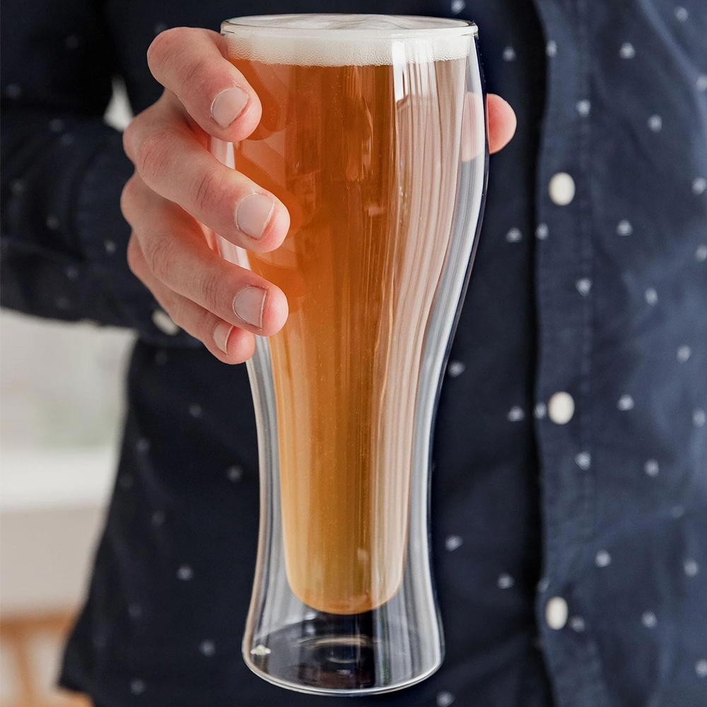 Šis modernus stiklinis bokalas yra puikus pasirinkimas kiekvienam alaus mėgėjui. Pagamintas iš aukštos kokybės stiklo su dvigubomis sienelėmis, jis ne tik stilingai atrodo, bet ir užtikrina praktiškumą – gėrimas ilgiau išlieka šaltas, o rankos nešąla.