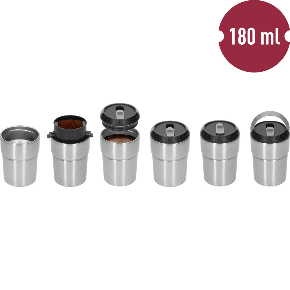 Šis elektrinis kavos malūnėlis su integruotu dripper tipo kavos ruošimo moduliu ir nerūdijančio plieno terminiu puodeliu yra skirtas mėgstantiems šviežiai maltą ir vietoje ruoštą kavą. Įrenginys yra kompaktiškas, mobilus ir lengvai naudojamas, todėl puikiai tinka naudoti namuose, biure, kelionėse ar laisvalaikio metu. Vienu įrenginiu galite malti kavos pupeles, ruošti kavą ir ją gerti.