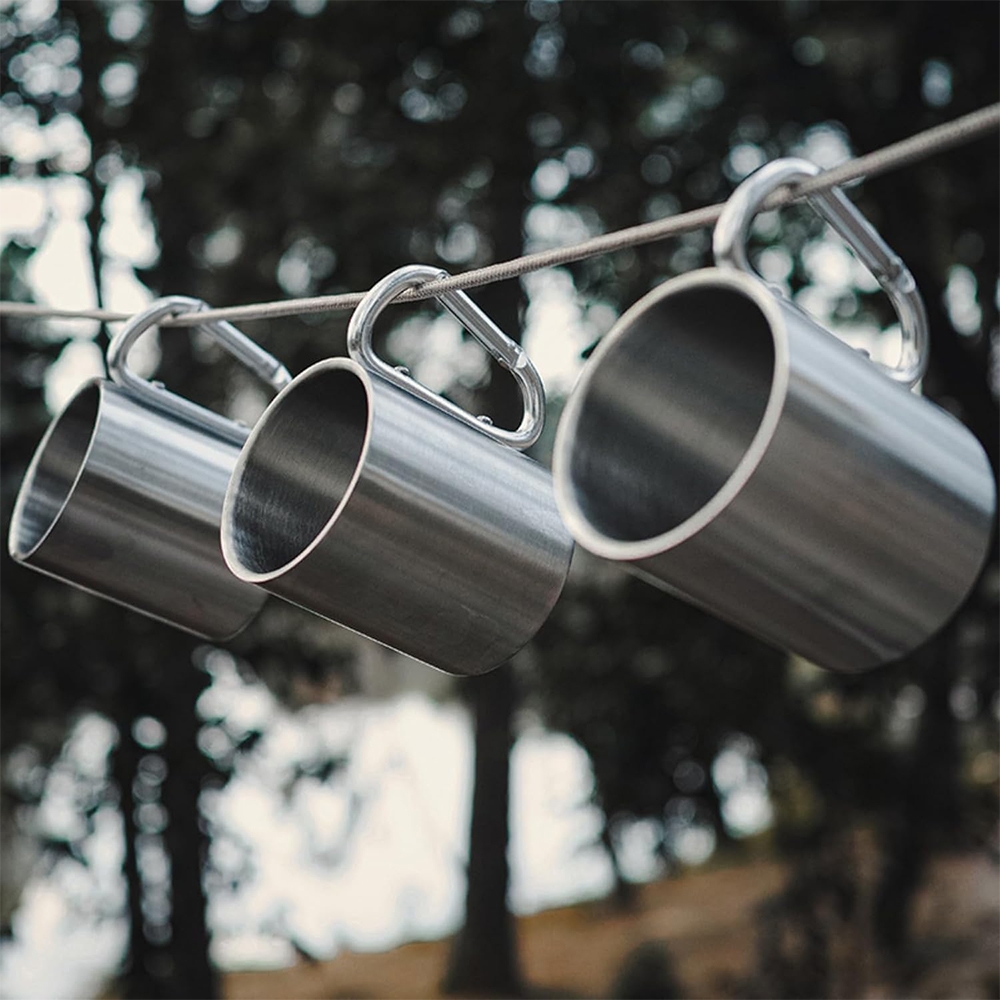 Šis stilingas ir itin tvirtas nerūdijančio plieno puodelis su karabino tipo rankena – puikus pasirinkimas keliautojams, žygeiviams, stovyklautojams ir visiems, kurie vertina patogumą bei ilgaamžiškumą. Tai ne tik paprastas puodelis – tai daugiafunkcis aksesuaras, kurį lengvai prisegsite prie kuprinės, diržo ar kitos įrangos ir visada turėsite po ranka.