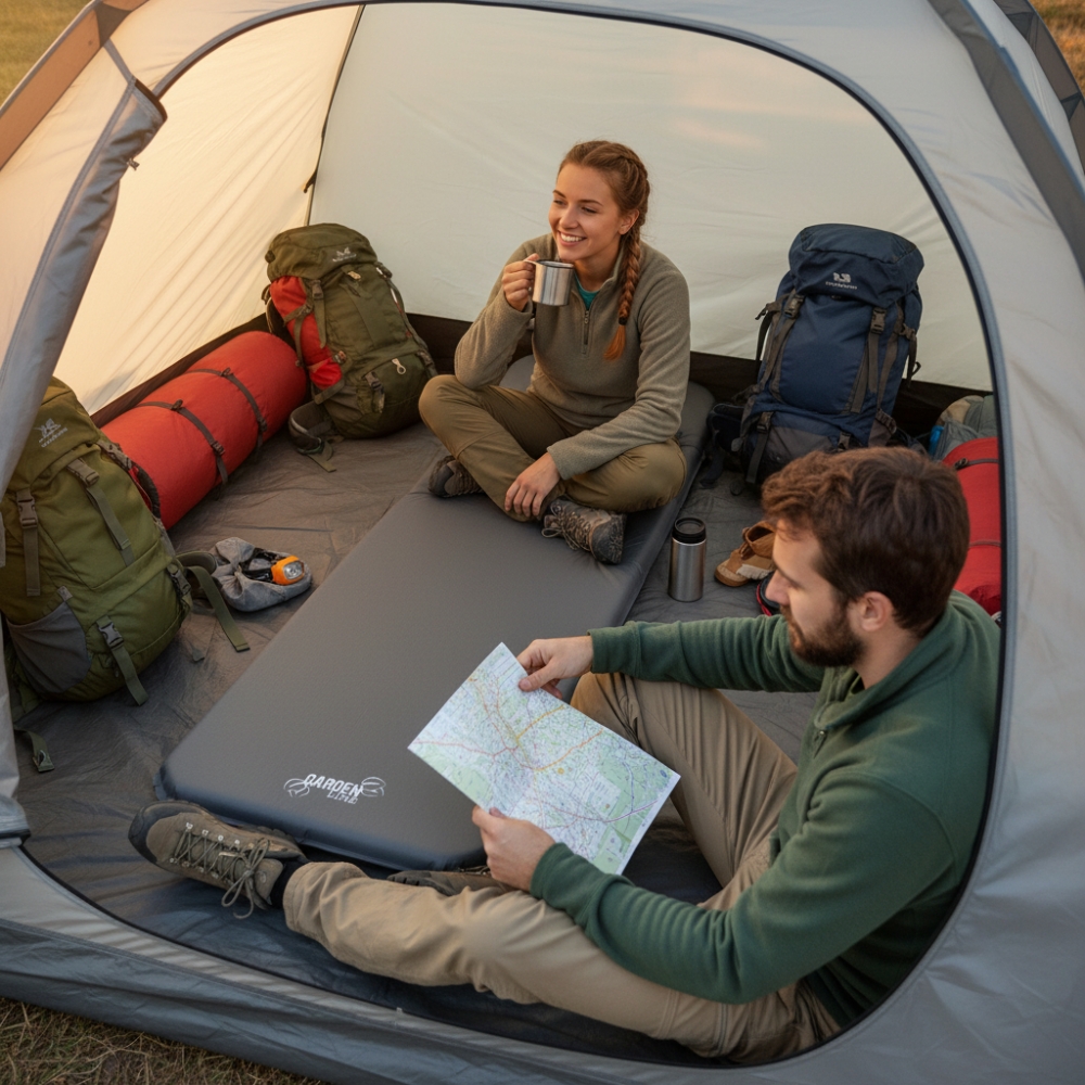 Patogus ir praktiškas savipučiamas turistinis kilimėlis, skirtas patogiam poilsiui gamtoje, palapinėje, žygiuose ar kelionėse. Atidarius vožtuvą, kilimėlis automatiškai prisipučia – nereikia pompų ar papildomų pastangų.