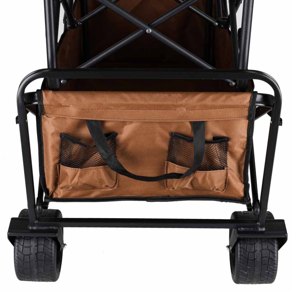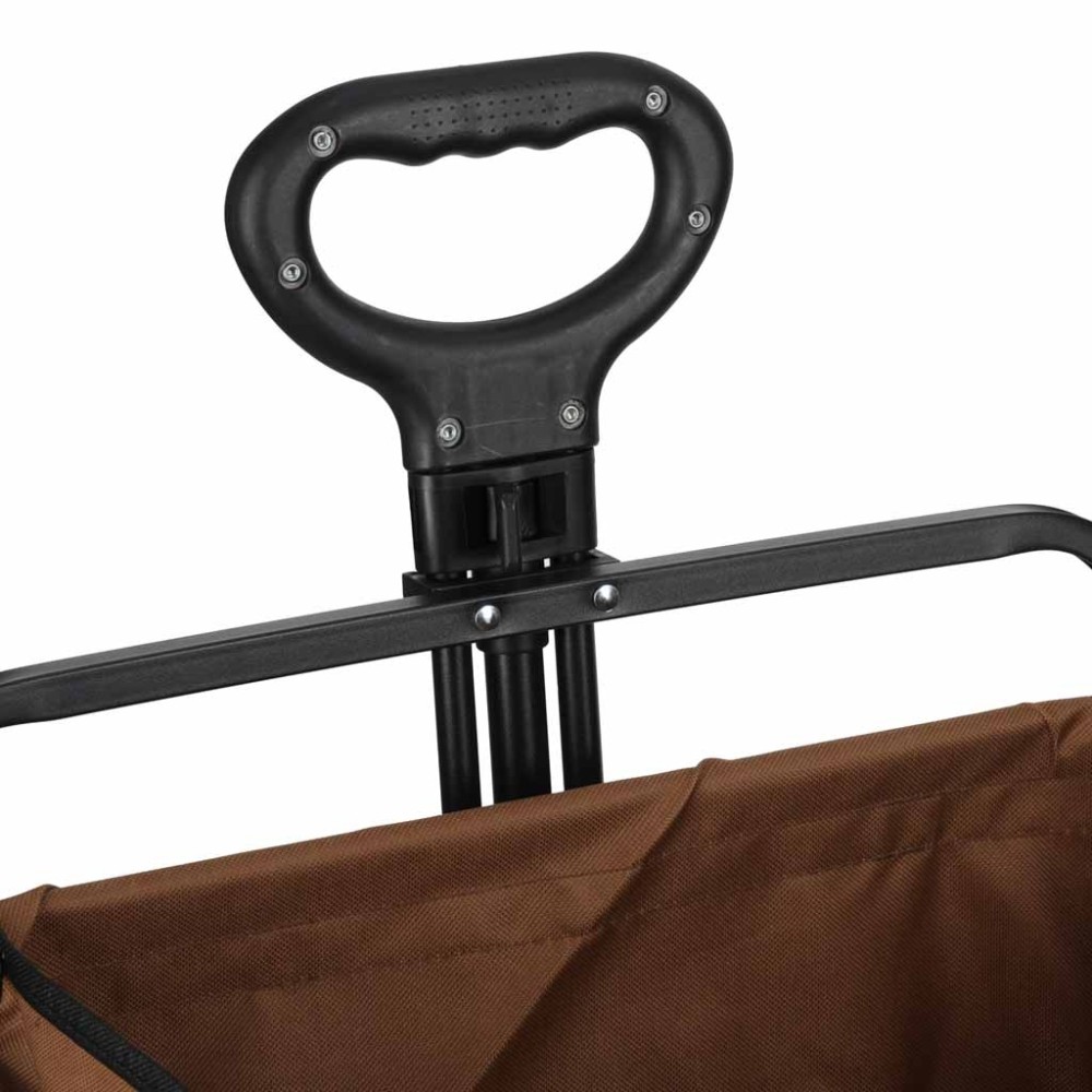 Dideli, tvirti ratai leidžia lengvai judėti įvairiais paviršiais – žole, smėliu ar žvyru. Ergonomiška rankena užtikrina patogų valdymą, o sulankstoma konstrukcija leidžia vežimėlį greitai suskleisti ir transportuoti.