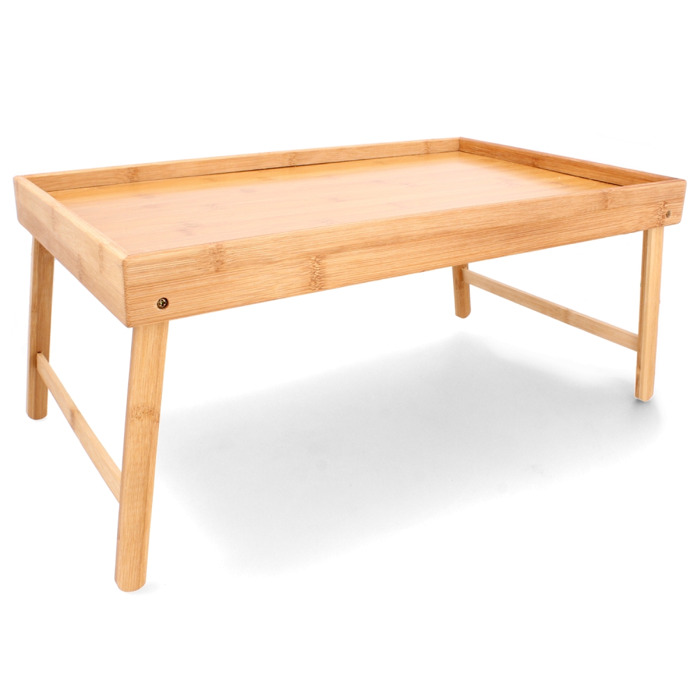 Pusryčių staliukas / nešiojamas staliukas nešiojamam kompiuteriui lovai (bambukinis, su sulankstomomis kojelėmis)